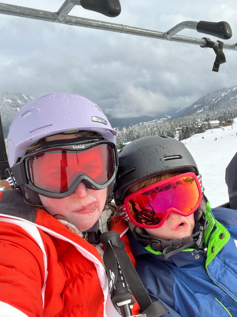 It snowed on us. We skied and had a blast. We came back the next weekend. It rained. We got sopping wet and still had a blast. Okay, but maybe we donât prefer skiing in the rain. We still laughed a lot and had a blast, though, and it was definitely worth it! Another special shared ski session in the mountains.