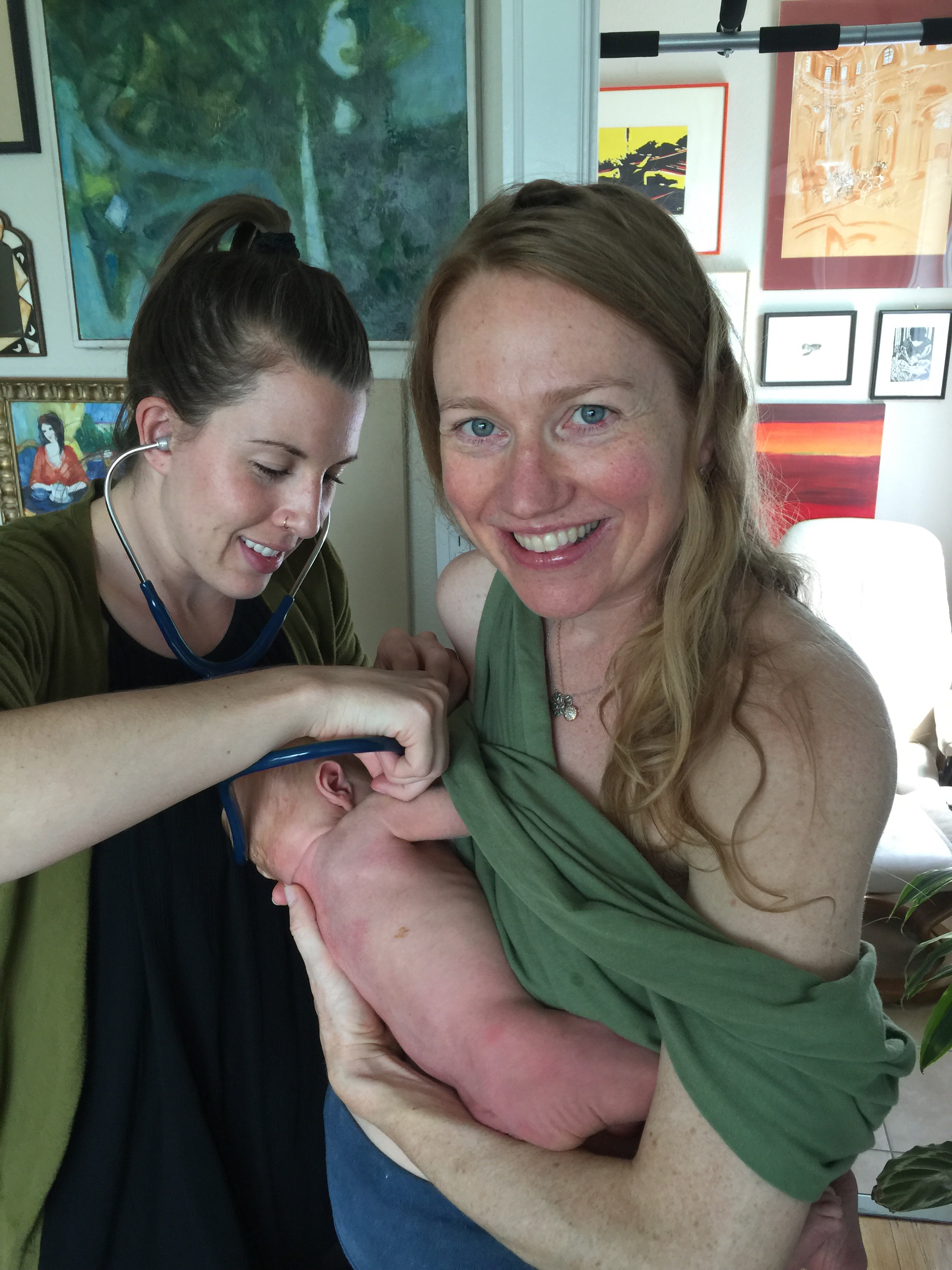 “After getting through his third night of life I was paging the midwife for a weight check, anxious about his dropping weight. Midwife Carly came by to do an “emergency” check up for the fretful mom. Knowing that he was only getting colostrum and working so hard for it made me anxious that he was going to dedicate, shrivel up, and die. I drank several gallons of lactation tea.