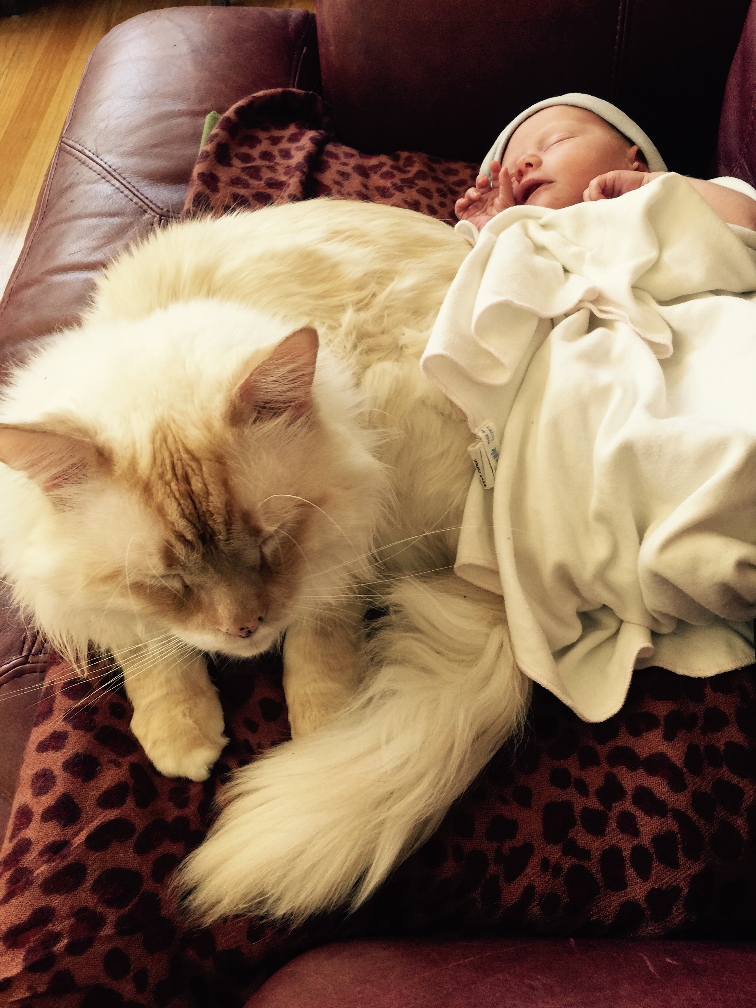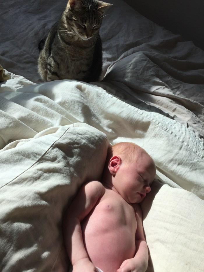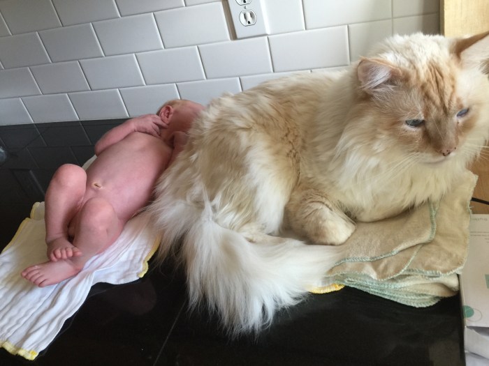 Our worst fears, however, of jealous cats acting out or over exuberantly loving on Lake are laid to rest as they take on more of a guardianship role. The furbys and the baby are all getting along famously, and continuing to adapt nicely to each other. Soon I’m anticipating co-napping cuddles!