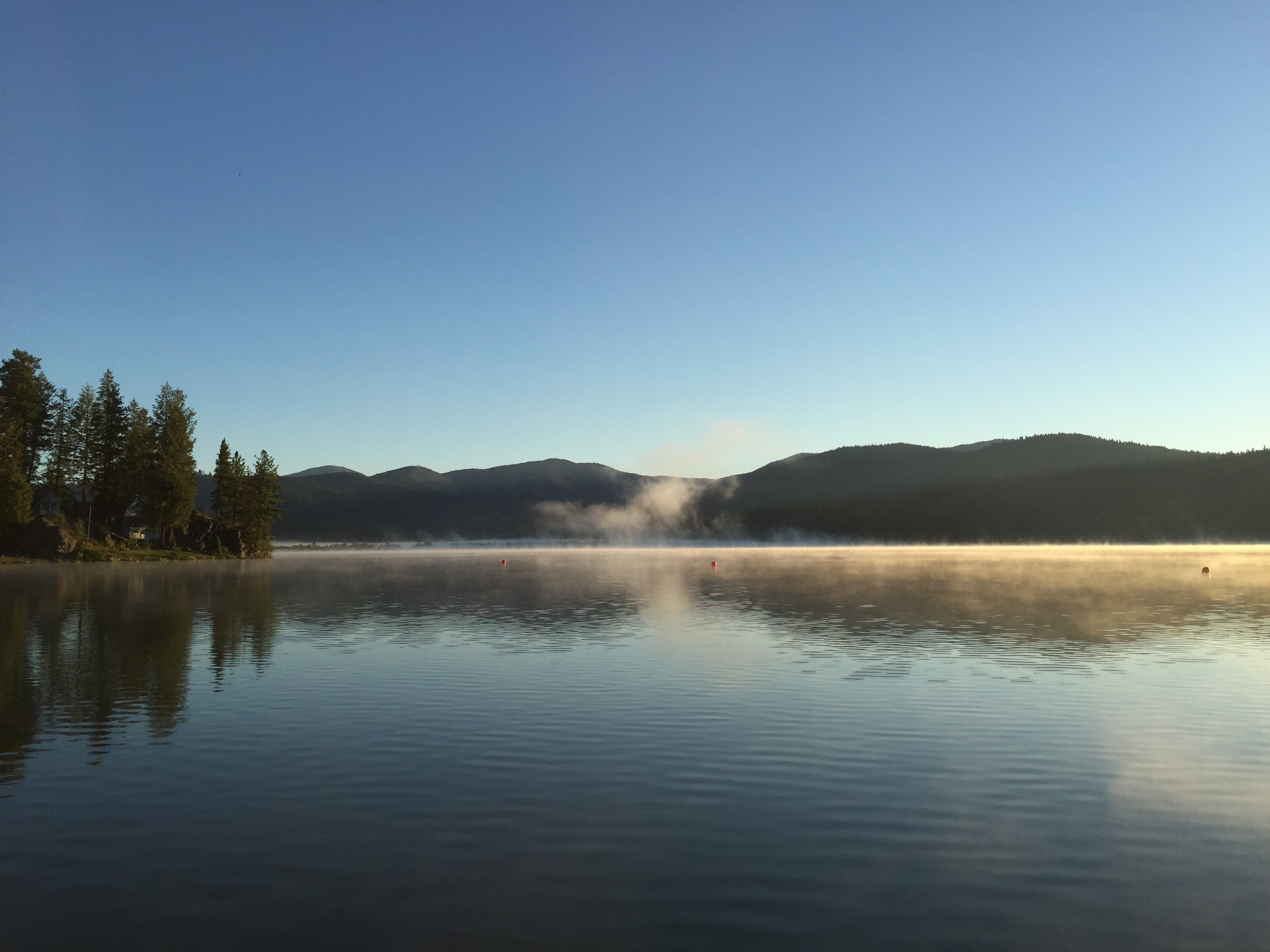 This morning Lake and I watched the sun rise over the forested ridge across the lake at 0545. It is quiet, save for the sounds of the birds, osprey, occasional bass jumping plop. The large waning moon is still prominent in the sky, cerulean blue, not a cloud in sight. The early morning mist is rolling off the lake. The air smells piney and fresh. A breeze is picking up, ruffling the deciduous leaved trees along the shore. A long train rumbles along in the distance. The resident bald eagle is keeping vigil from atop a tree on Priest Point at the end of Diana Bay.