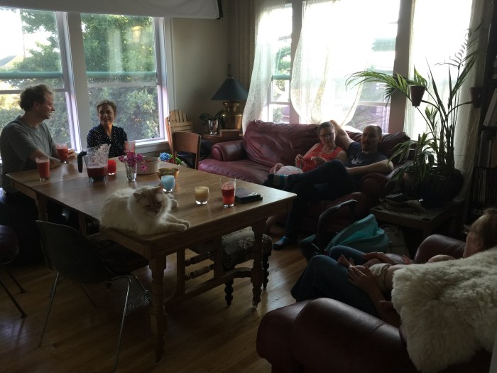 Today we spent all day socializing. Not on purpose directly. It just happened, really. We set out for a walk through the woods, where we saw six deer, and then two more later, who may have been the same two as from the earlier bunch of six. We walked around the bay and the peninsula visiting the Galvans, the Heylmans, the Martins, Landreth, Beil, and then we had the Aldworth and Frasco families over for dinner. Everyone is happy to meet Lake, but it’s not just that. It’s what people do around here: drop in, drop by, come around, socialize, stop in, stop by, come over, say hello. Everyone is friendly and so relaxed, on “lake time”, and you’ve known them and their parents and maybe grandparents too your whole life.