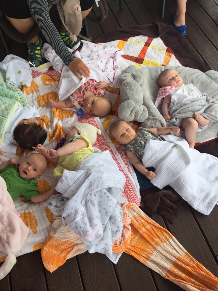 I’m talking to the wife, but glancing at the husband. They are unloading baby gear to the picnic table and she nods and says to him: