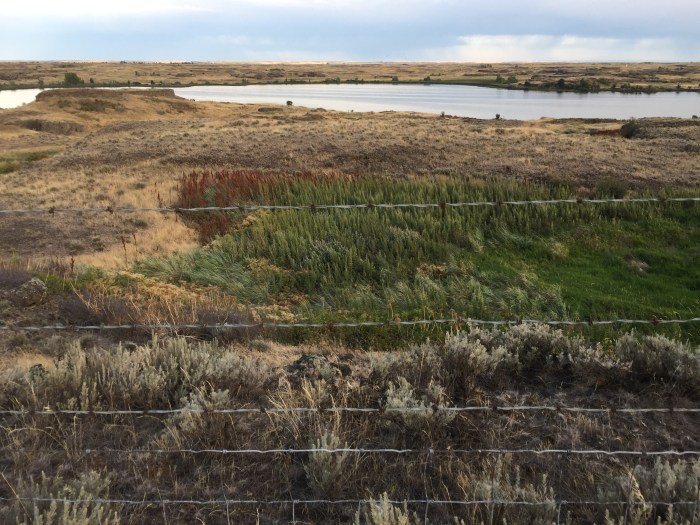 We drove 250 miles in four hours to Sprague Lake Rest Area before we finally stopped for a pause. Here I noticed the left rear tire was low on air. It didn’t look round. We walked around the rest area reviving ourselves for a bit, then circled back to the car. The tire looked even lower. Shoot!