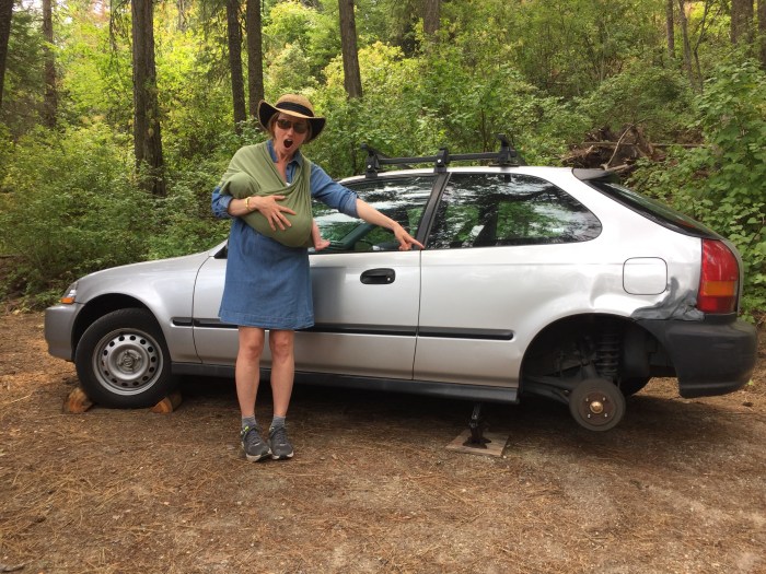 The first angel appeared in the form of a couple with a 7 1/2 month old from Vancouver, WA on their way to holiday in Coeur d’Alene, ID. They pulled up next to me just as I was mulling over my plan of action, pretty sure at that point that I did need a plan of action.