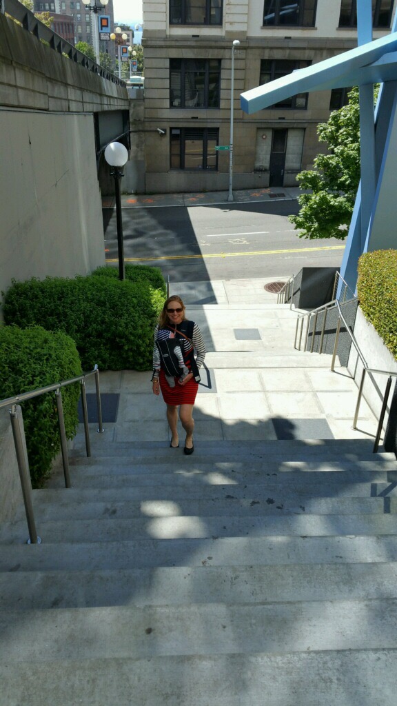 Unbelievably, he slept through the entire excursion: four hours in the middle of the day. Nothing like wanting to show him off and then he’s all curled up and sound asleep… completely hidden. Ah, well, it seemed like people got the gist of his size and babyness even without being able to hold or interact with him.