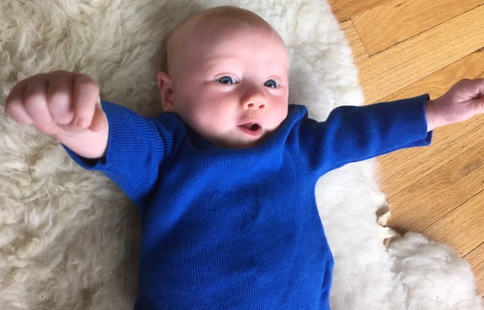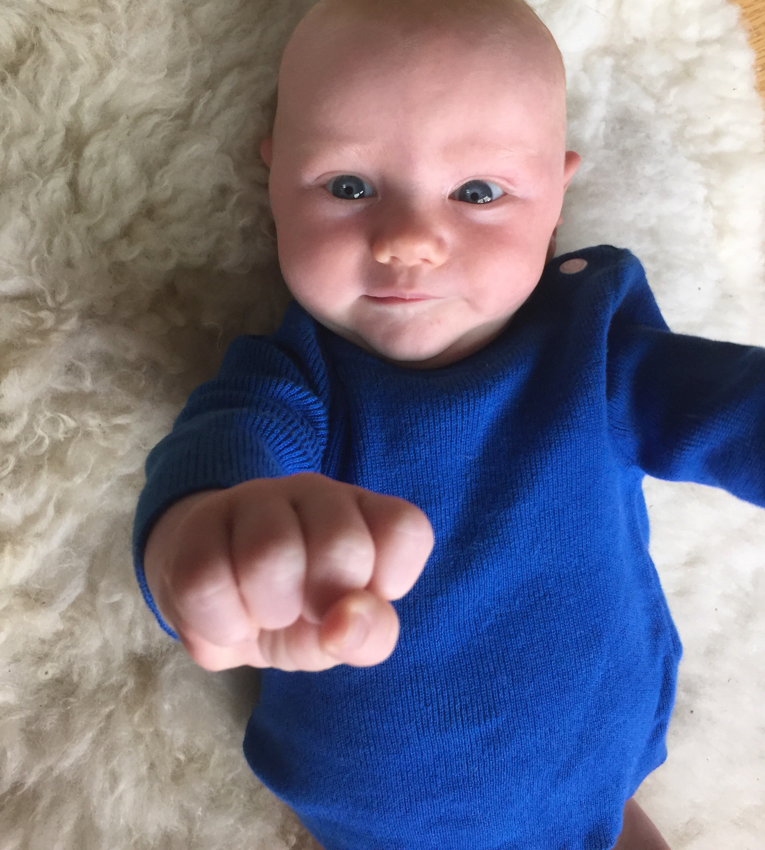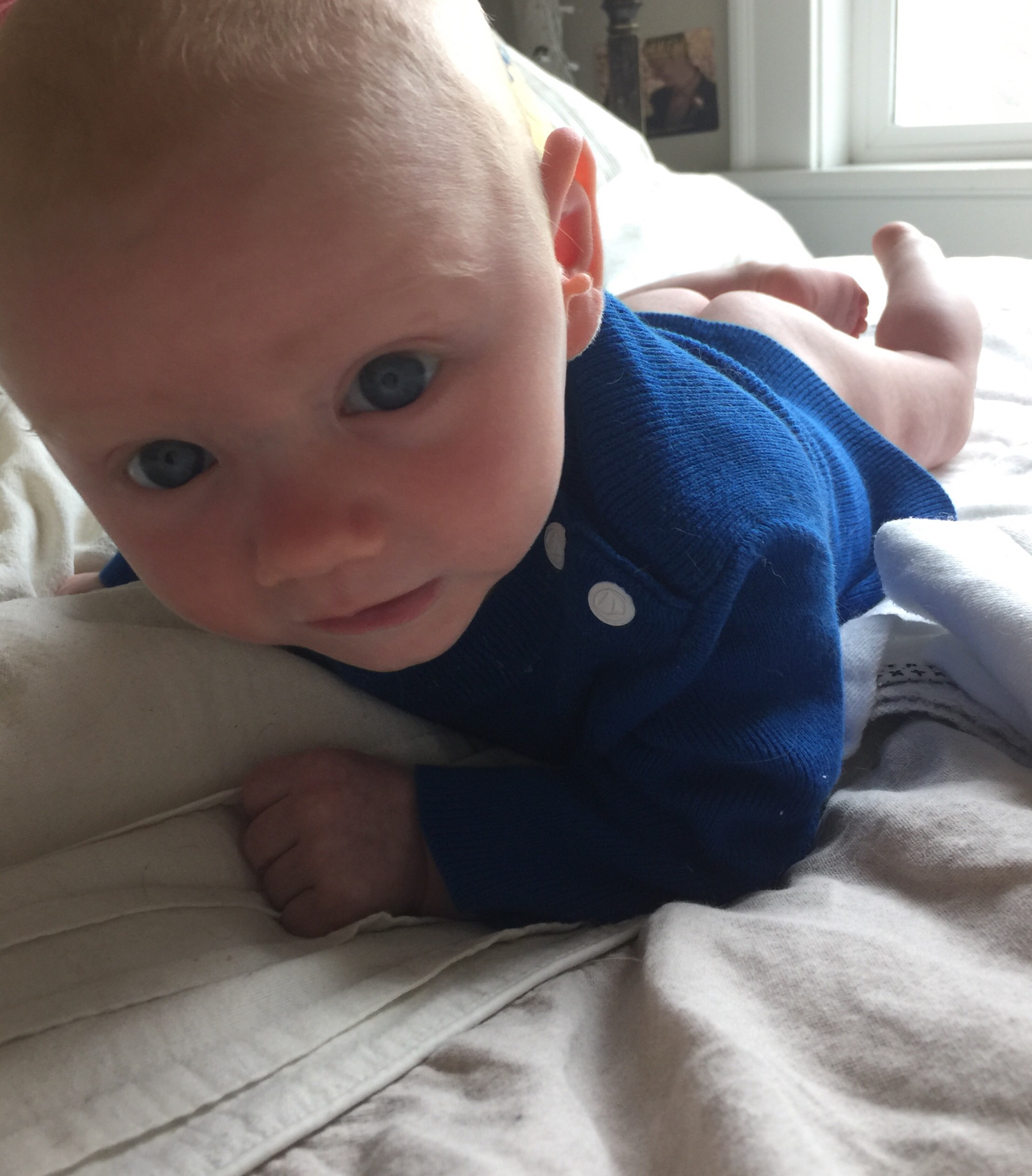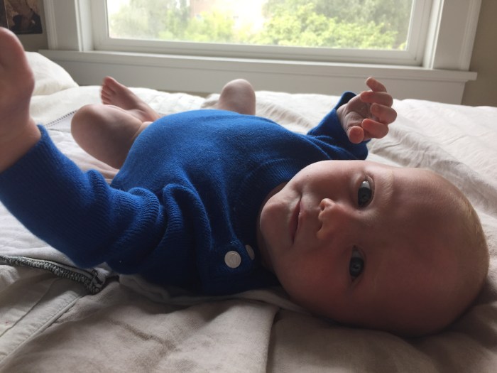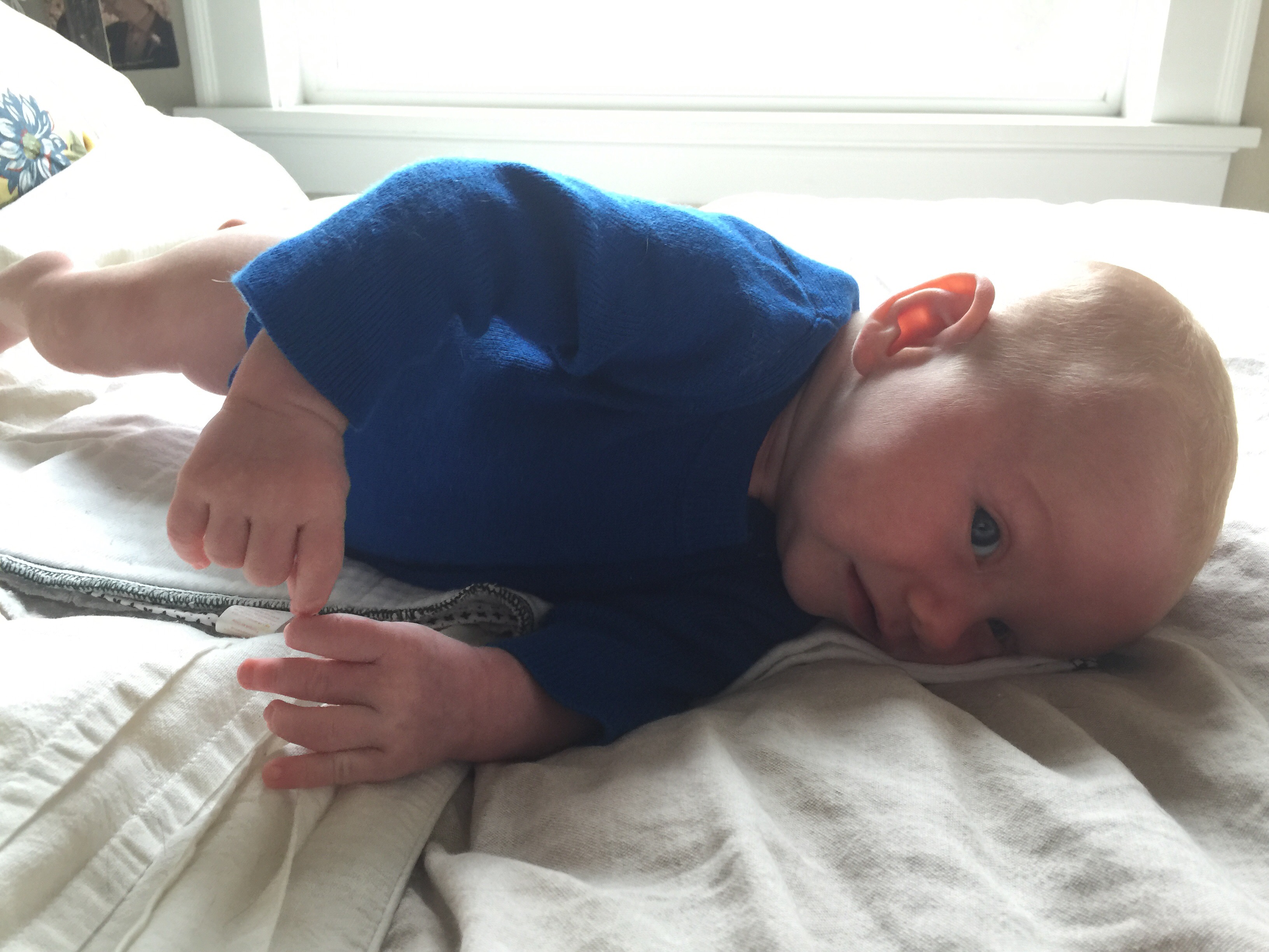 If rolling becomes an Olympic sport, Lake is all practiced up! He has showed an early aptitude as world class roller! Today during his work out (aka tummy time) he did three reps.