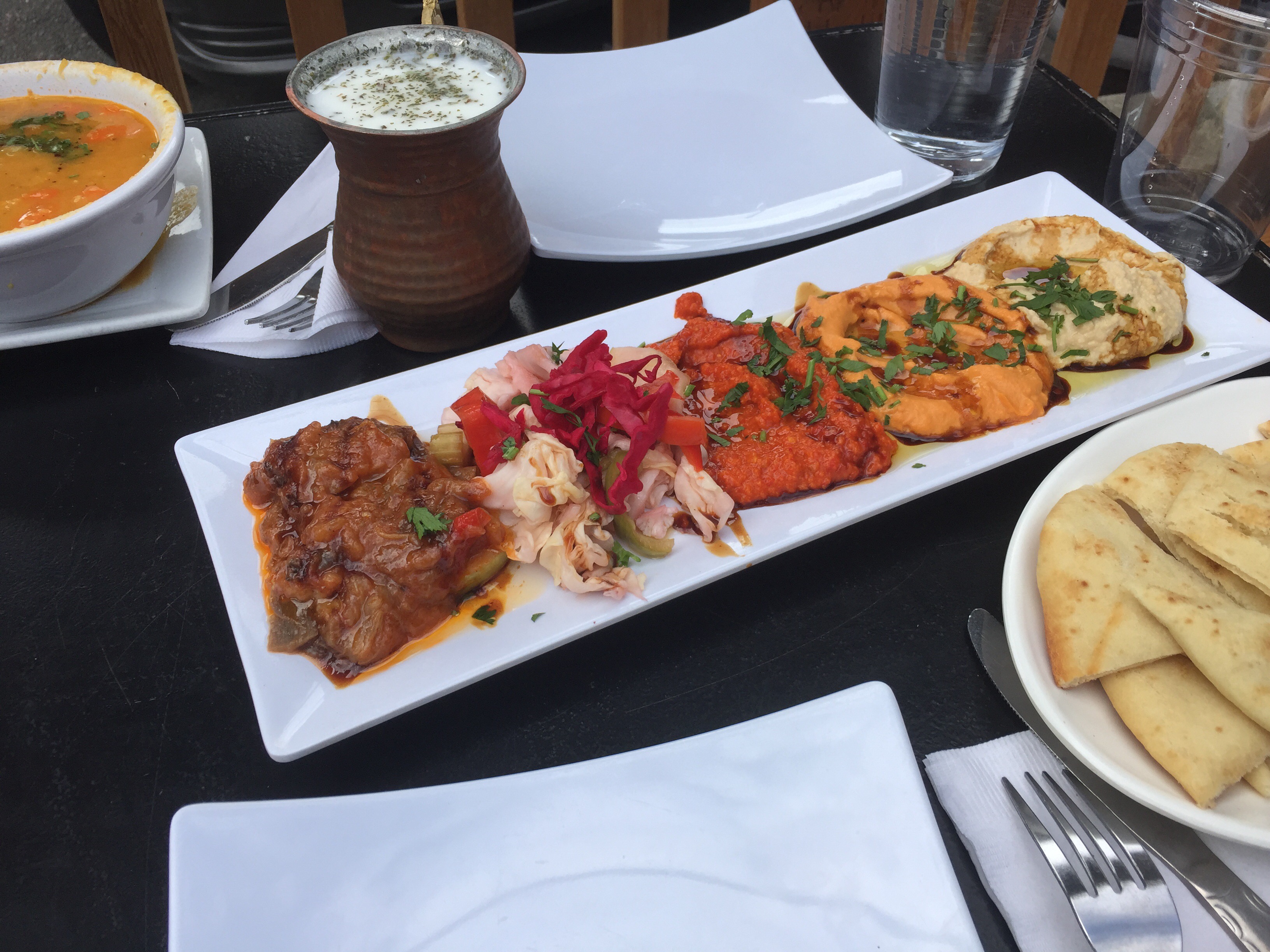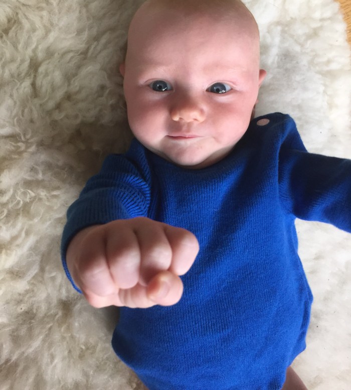 He is a very stalwart traveler. Bundled into his Baby Björn he endures mountain scrabbling and most of a lunch out.