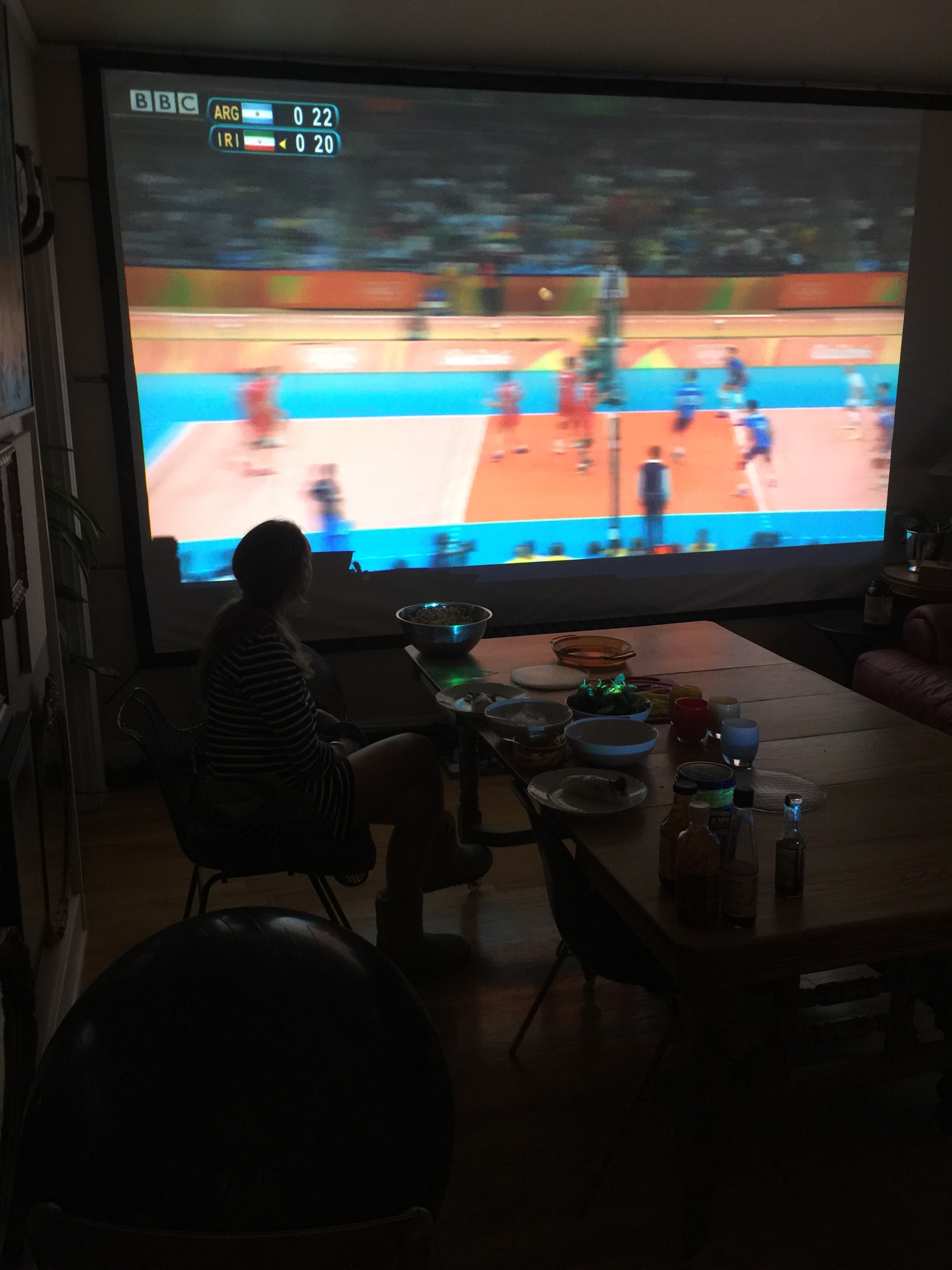 This evening we watch some Rio 2016 Olympic Mens Volleyball on the big screen while assembling fresh spring rolls. Lake takes it all in. He flexes and practices some blocks. Wears himself out. Asleep by 9:30pm. We watch some Women’s tennis and soon follow. Yeah, baby, we will follow you all the way to the Olympics. You are our gold medalist!
