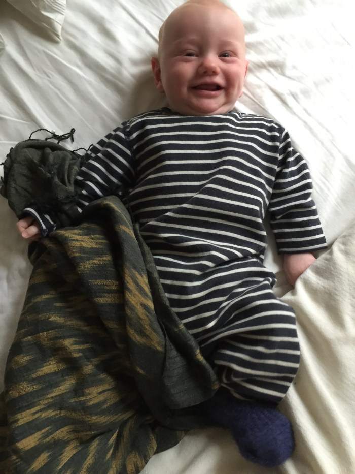 It was such an about face from the night prior, where he was waking up crying every few hours, that we were full of relief and gratitude. And if anything he had been more congested yesterday evening than the day before. This morning I woke up, not to his crying, but to his cooing. My breasts were hugely engorged with milkies so I’m thinking: he’s got to be ready for breakfast. The little trooper!