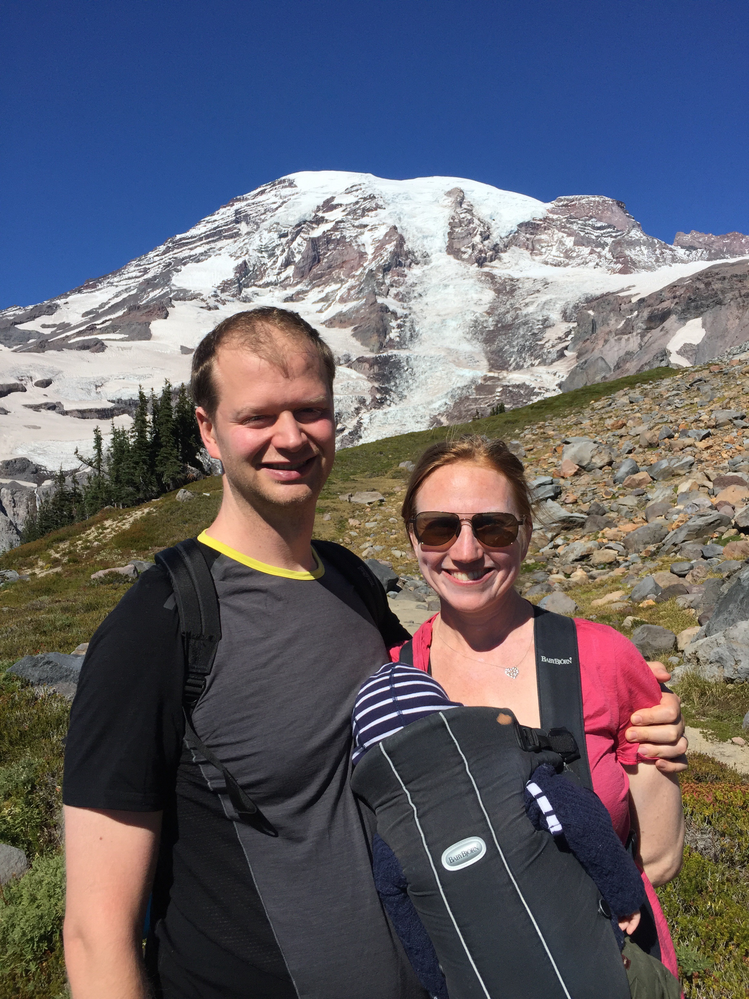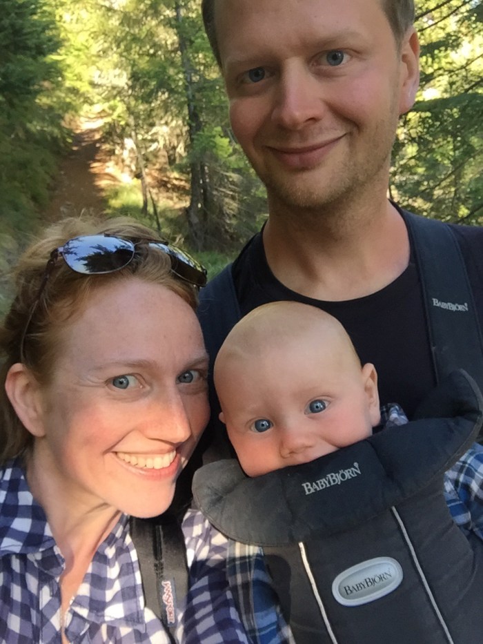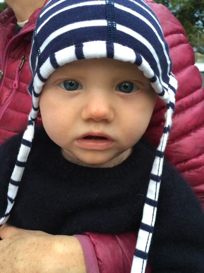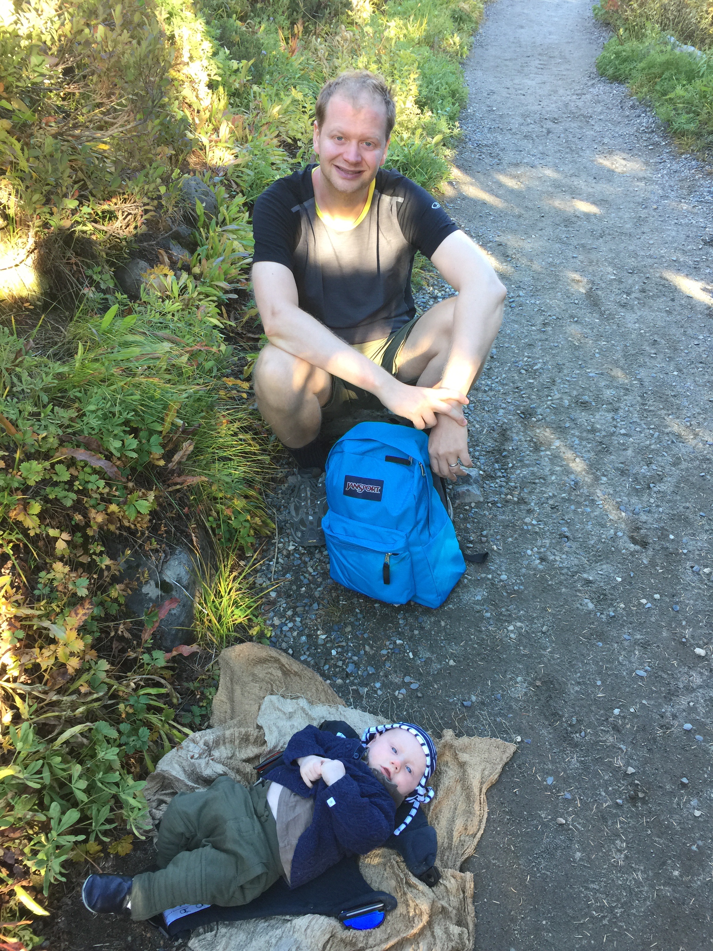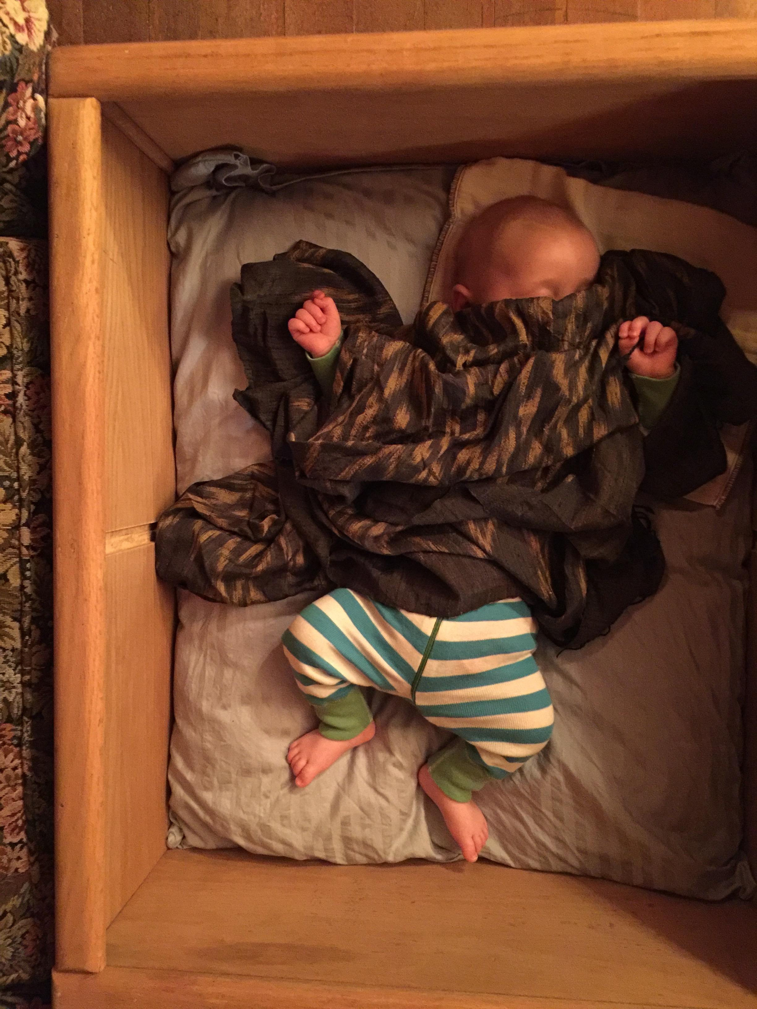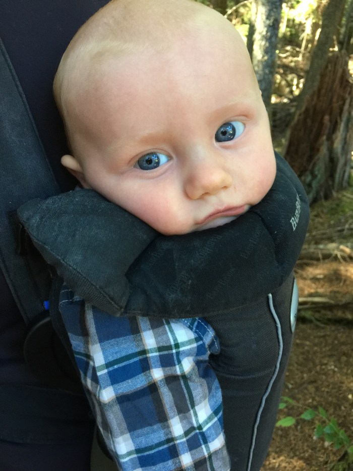 Hidden from view is all the poo covering each piece of clothing plus the Baby Björn. Stoic innocent little guy. He’s unfazed.