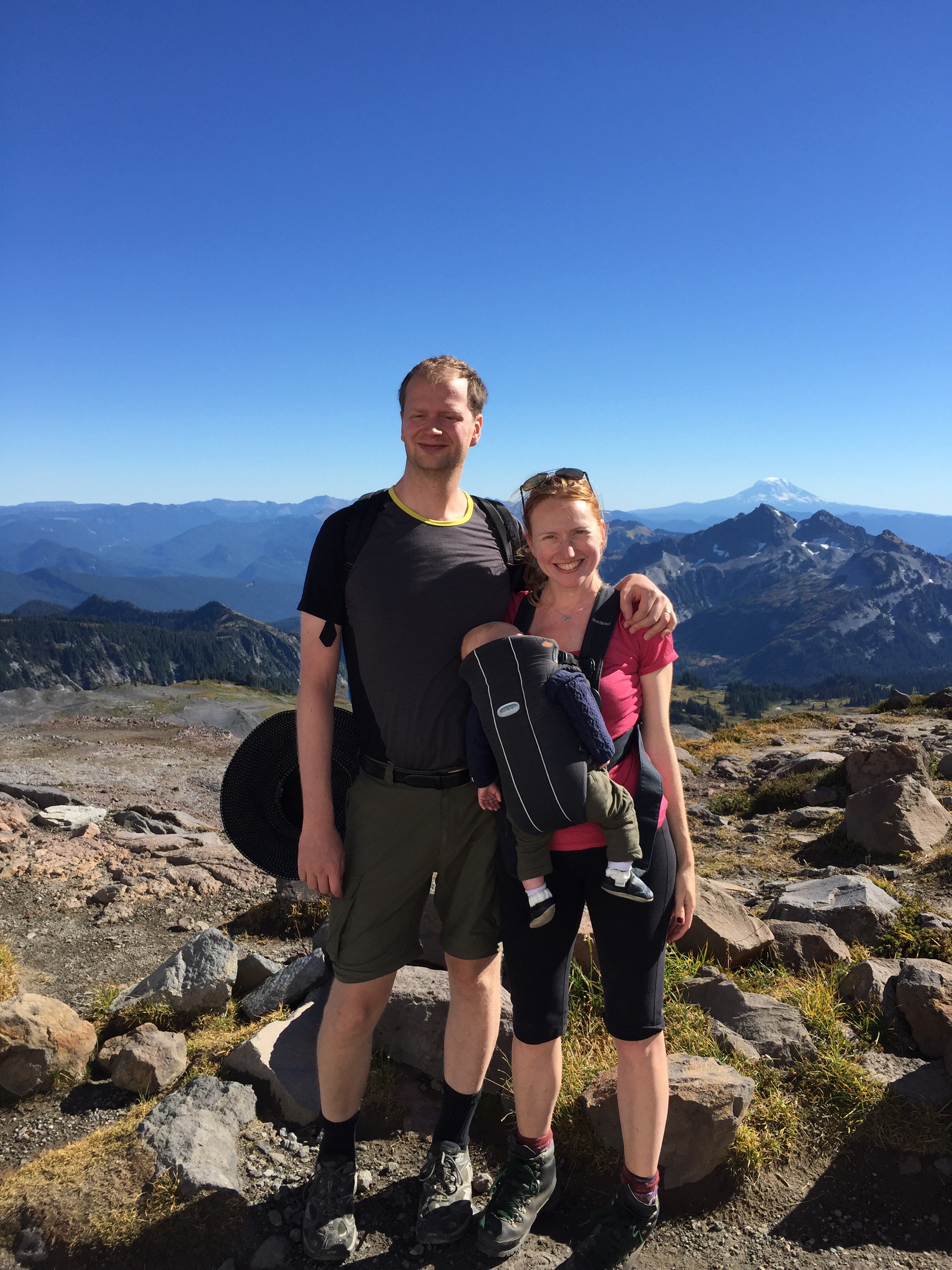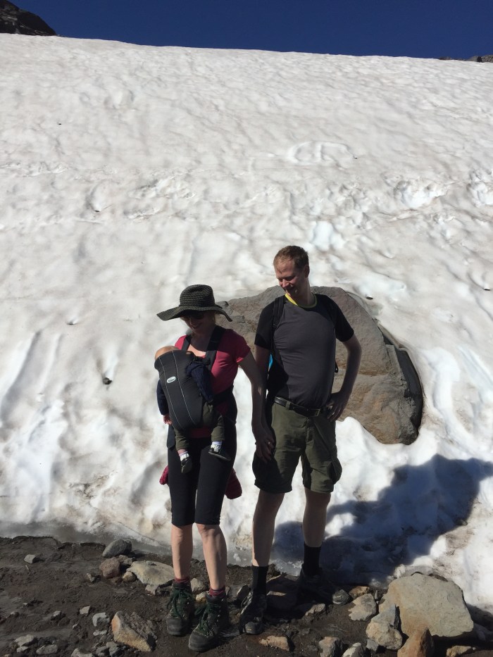 Ach! I’m melting!Snow!Panorama Point: Southbound views for miles! Mt. Rainier, classic and iconic: our high point for this year!Hiking back downOne final rest stop!