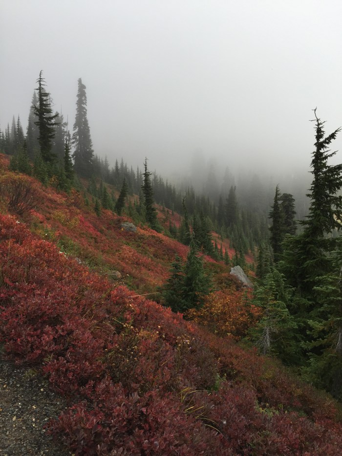 but the mountains beckoned and we just kept going. The vaccinium huckleberry leaves painting a brilliant red mountainside.