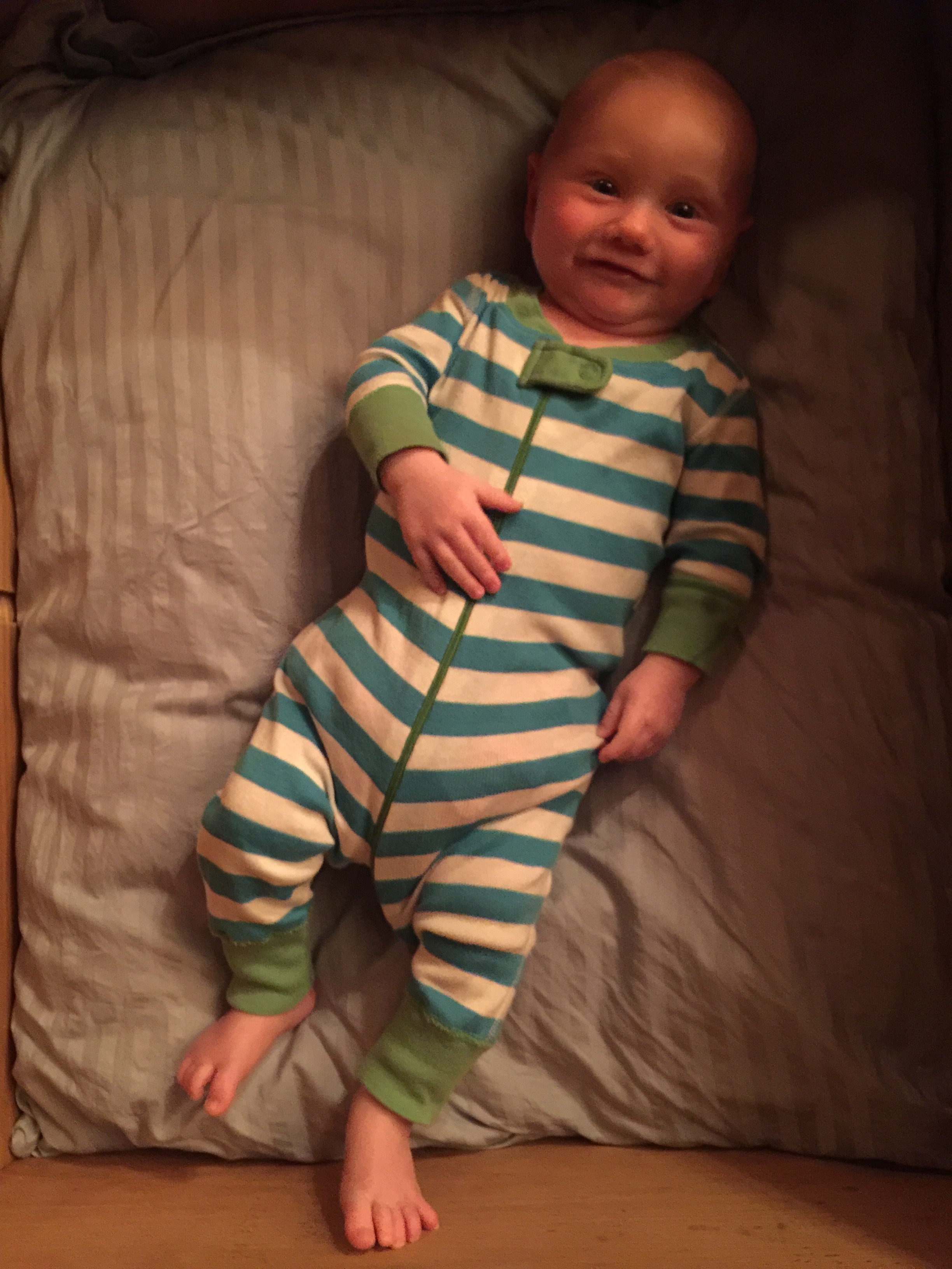 Lake has started putting himself to sleep. Around 8 o’clock he gets tired, he might even rub his eyes. He’s happy to get into bed and fall asleep soon after. This is new and pretty fun!