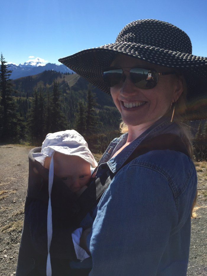 Lake’s first national park: Olympic National Park. How fitting since both Mummy and Daddy herald from the Olympic Peninsula. He did an amazing job traveling across on the Bremerton ferry and then up to Hurricane Ridge. We felt the chilly late Summer mountain wind, the bright intense sunlight, smelled the fresh pine air and saw the requisite deer. We offered Lake the full Hurricane Ridge experience. We are here with Nana’s ladies’ hiking group, so tonight Lake had 35 ladies doting on him during the group’s dinner.