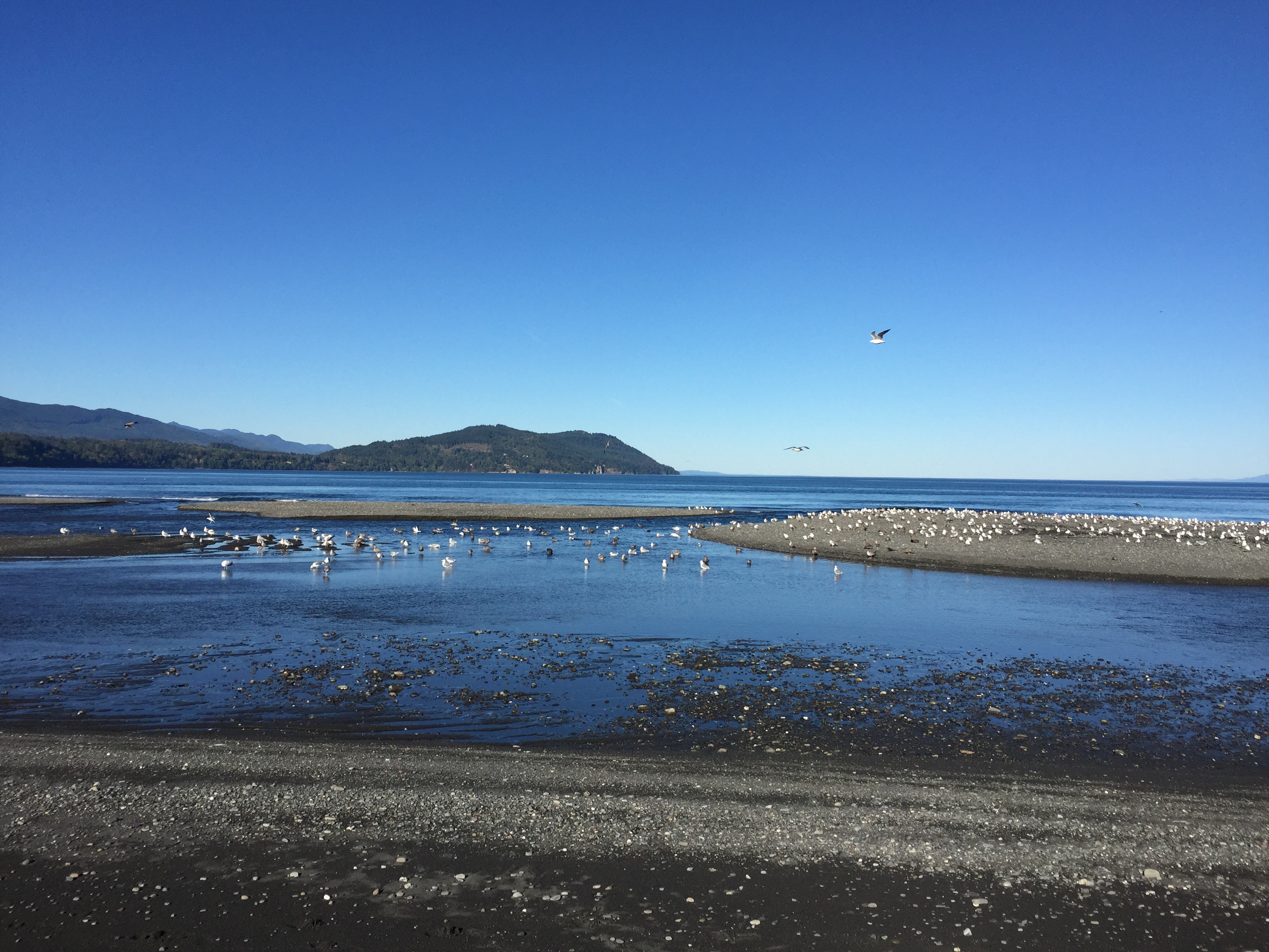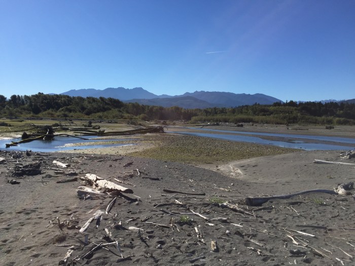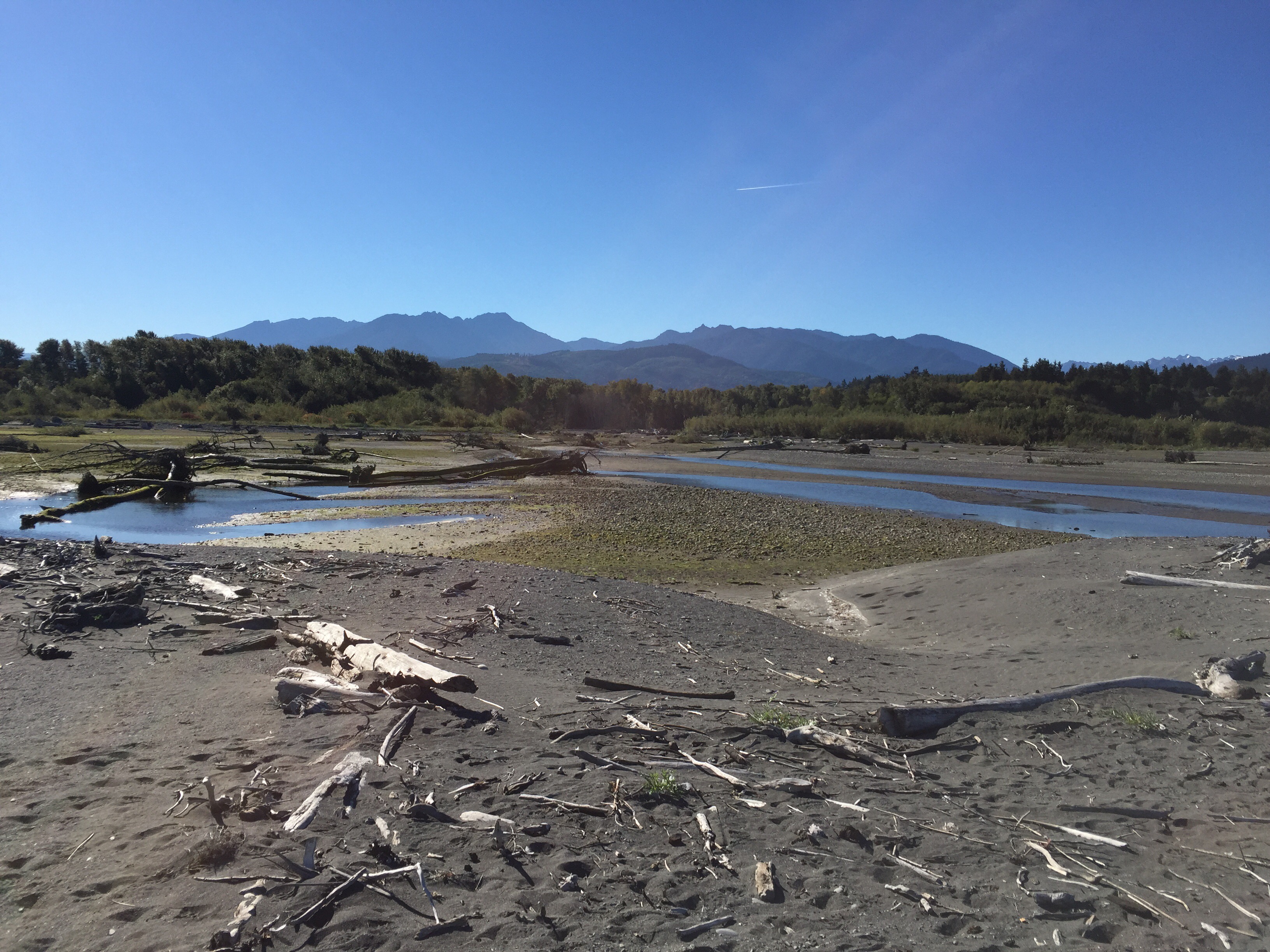 Following the removal of both dams on the Elwha River (2011-2014) the river, watershed, estuary and delta are in the process of being freed and restored. This comes after 100 years of being a dammed watershed, and decades of dedicated and relentless work to remove the dams. I myself had worked on the project for six months during the summer season of 2001, mapping non-native populations of plant species along the Elwha River banks and lake shores. It was really special to be able to walk out on the newly reborn Elwha delta today with tribal member Robert Elofson as our guide this morning.