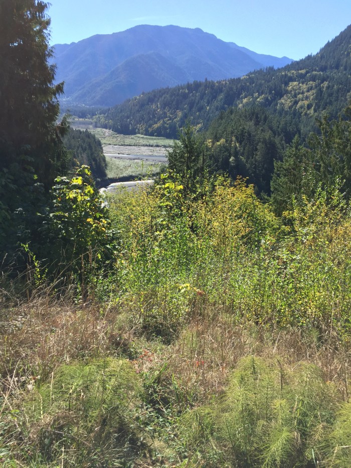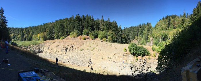 In the afternoon Rob took us to visit the canyon of the old Lower Elwha Dam. The remaining work on site currently includes removing some dangerous remaining rebar projections. Afterwards we went down into the old lake bed of what was Lake Aldwell. There was evidence of 19th century logged old growth trees, as well as the new native vegetation restoration efforts. It’s going well: the salmon are returning and the populations are swelling; the link between marine nutrients flowing up into the mountains and the sediment of the mountains returning the favor is being restored.