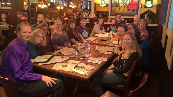 Today (September 17th) is Daddy’s birthday! Thanks to all our friends and family for coming out to the Old Spaghetti Factory on Elliot to celebrate this evening. In the process of us having a great time we were also upholding a longstanding Michael birthday tradition. For 14 of Michaels past 16 birthdays he’s held an annual gathering at the OSF. While it’s always a festive event, this one was by far my favorite.