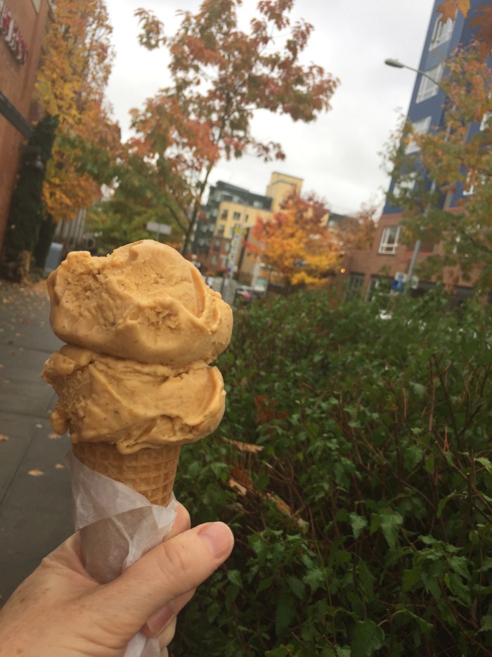 We enjoyed a modest three course meal with squash from Carver Farms as the centerpiece. I roasted the squash while sautéing garlic and onions and prepared it into a thick soup for the main course. It was delicately seasoned with Herbes de Provence, lavender, truffle salt, Spicy Salt and steamed kale for contrast.