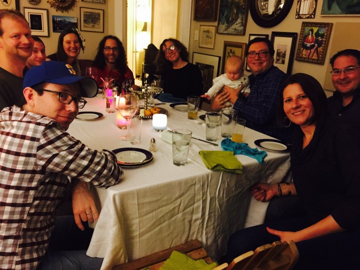 Tonight we had what will likely be our last SupperClub in the CatFlat. Thanks to all who attended it was a rousing good time! All of us were crowded around the dining table jammed full of mismatched chairs and every sittable surface was being sat upon. I bemoaned knowing there’s at least one, if not two, more leaves for this table somewhere out there in storage. I vaguely recall thinking that in the foreseeable future, what with Lake and the cozy quarters, we really wouldn’t be likely needing more that the three leaves that are currently extending our heirloom wedding table. The Last Supper came indeed as a pleasant surprise.