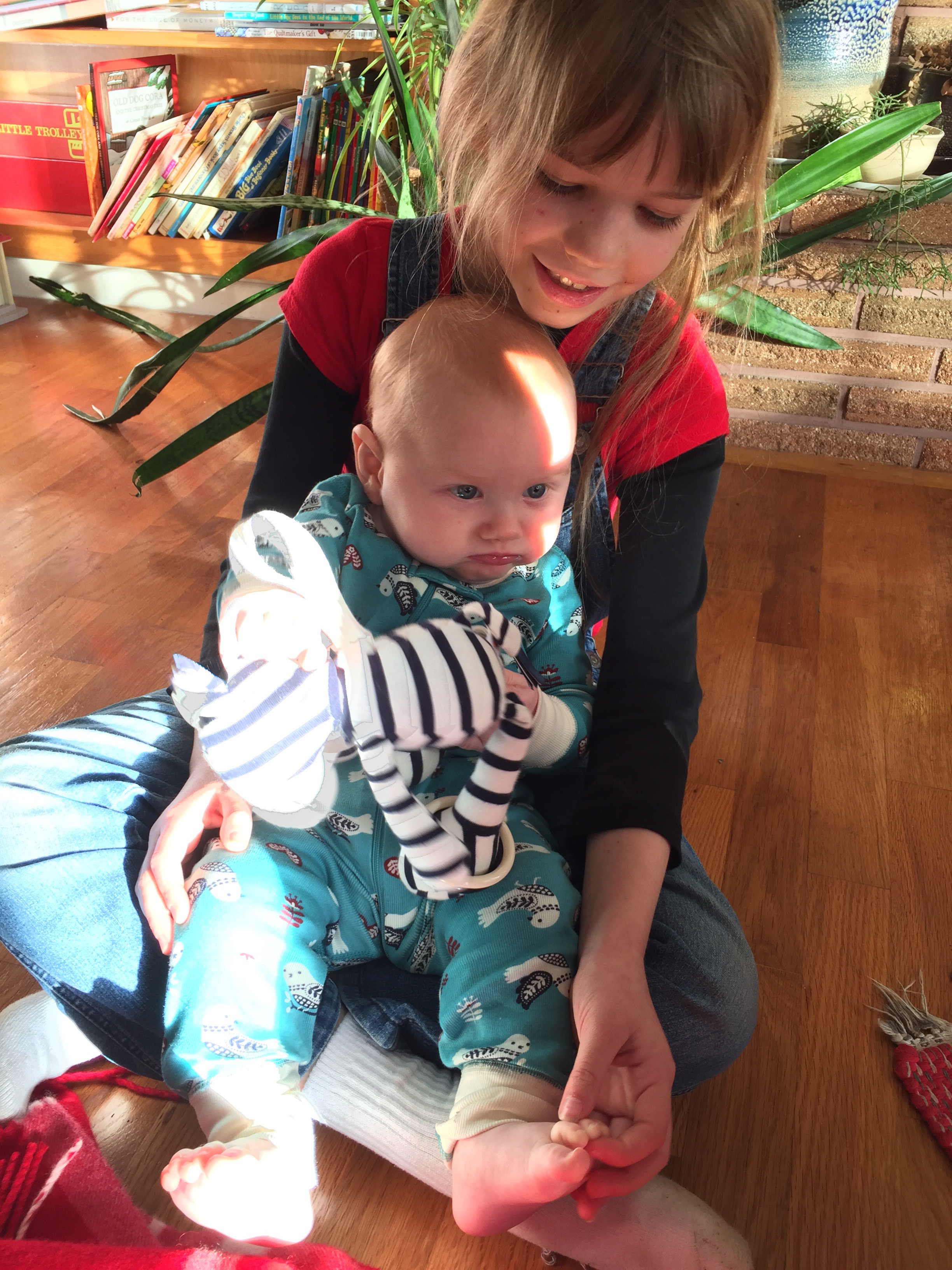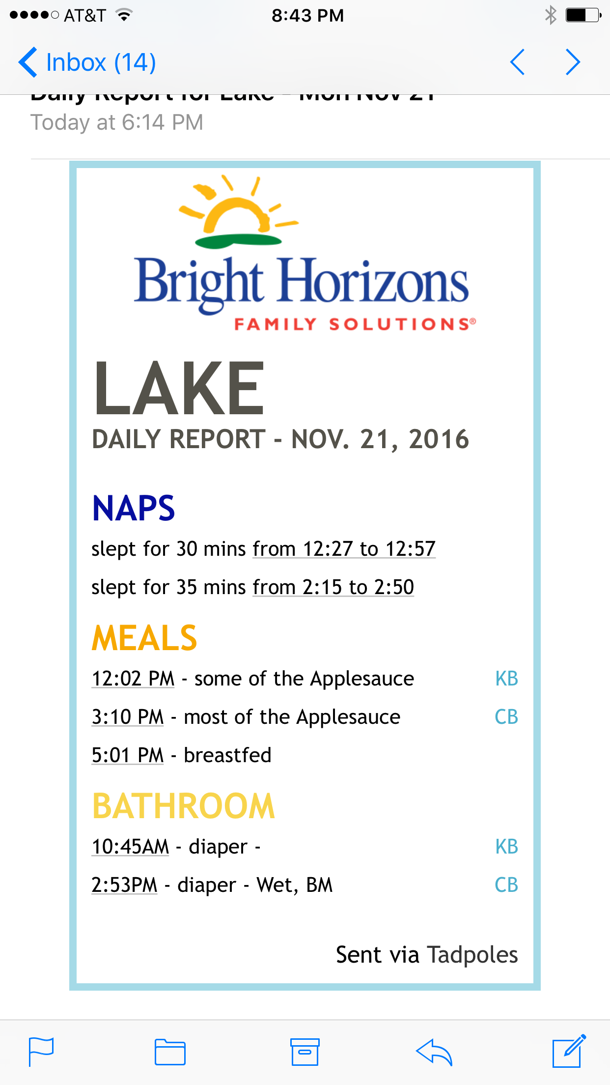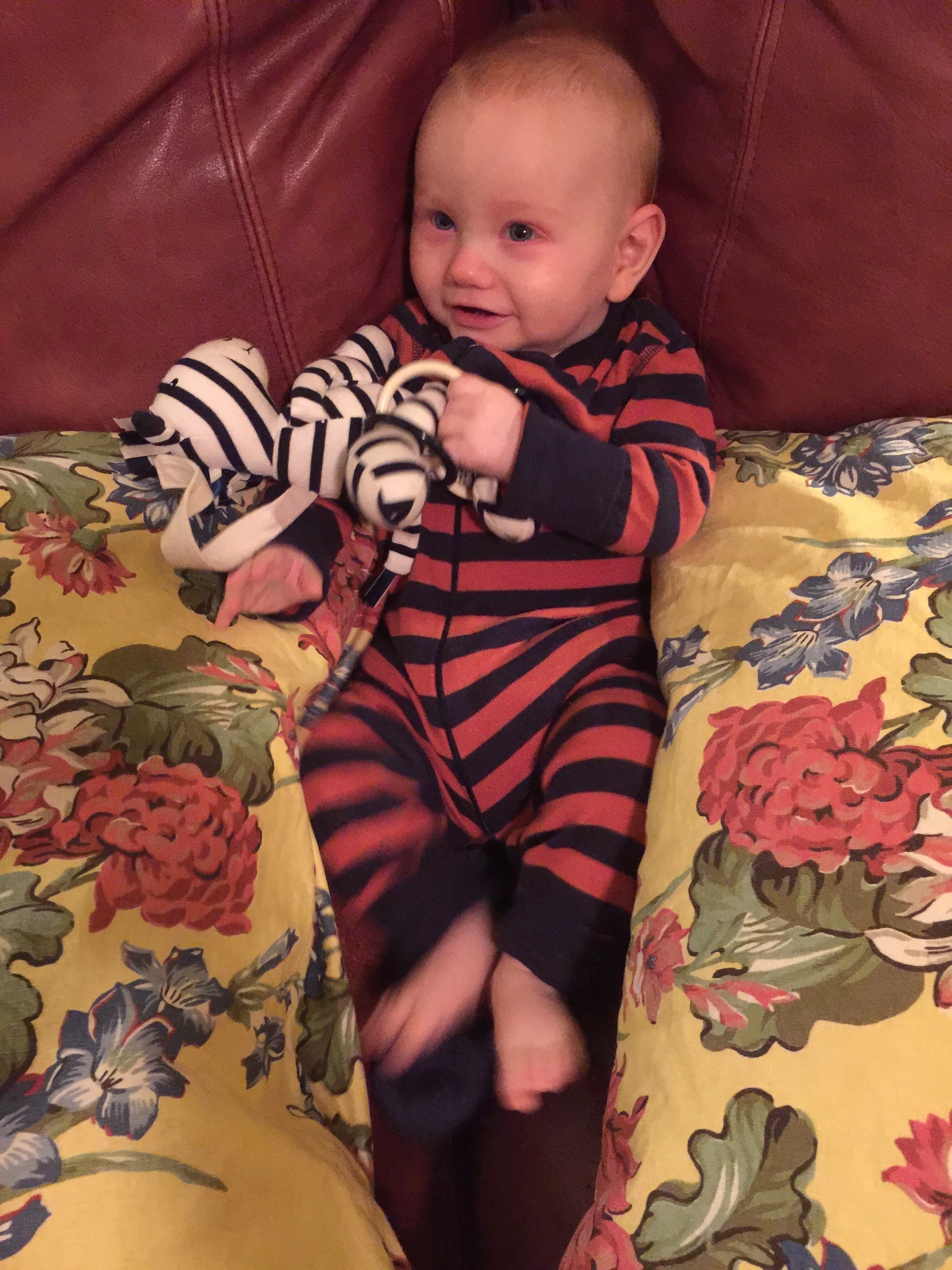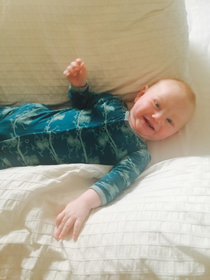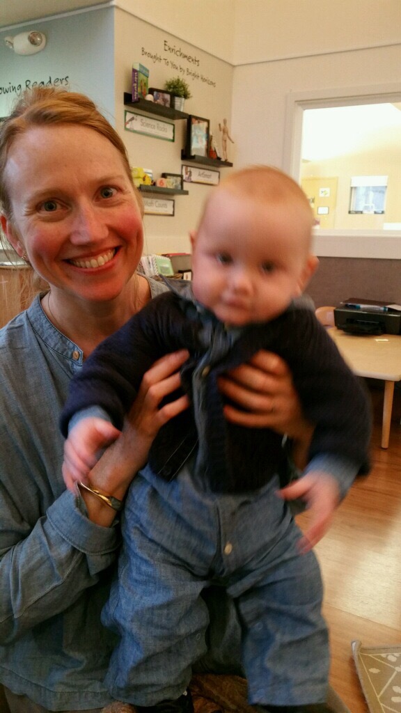 He was sounding in pain. We did not know what was wrong. It was distressing. Every time he would lose his latch he would revert to his cry. In retrospect I think it was the applesauce. A bit overboard on the applesauce at daycare. The well intentioned daycare providers fed him applesauce twice on Monday. Apparently he really liked it. It was his first food, and when I had authorized giving him fruit or vegetables to eat. I’d meant it to be a bit of a distraction in emergencies until I arrived to breastfeed him. Well, he had applesauce three times on Tuesday, where he ate “most of the applesauce” each time.