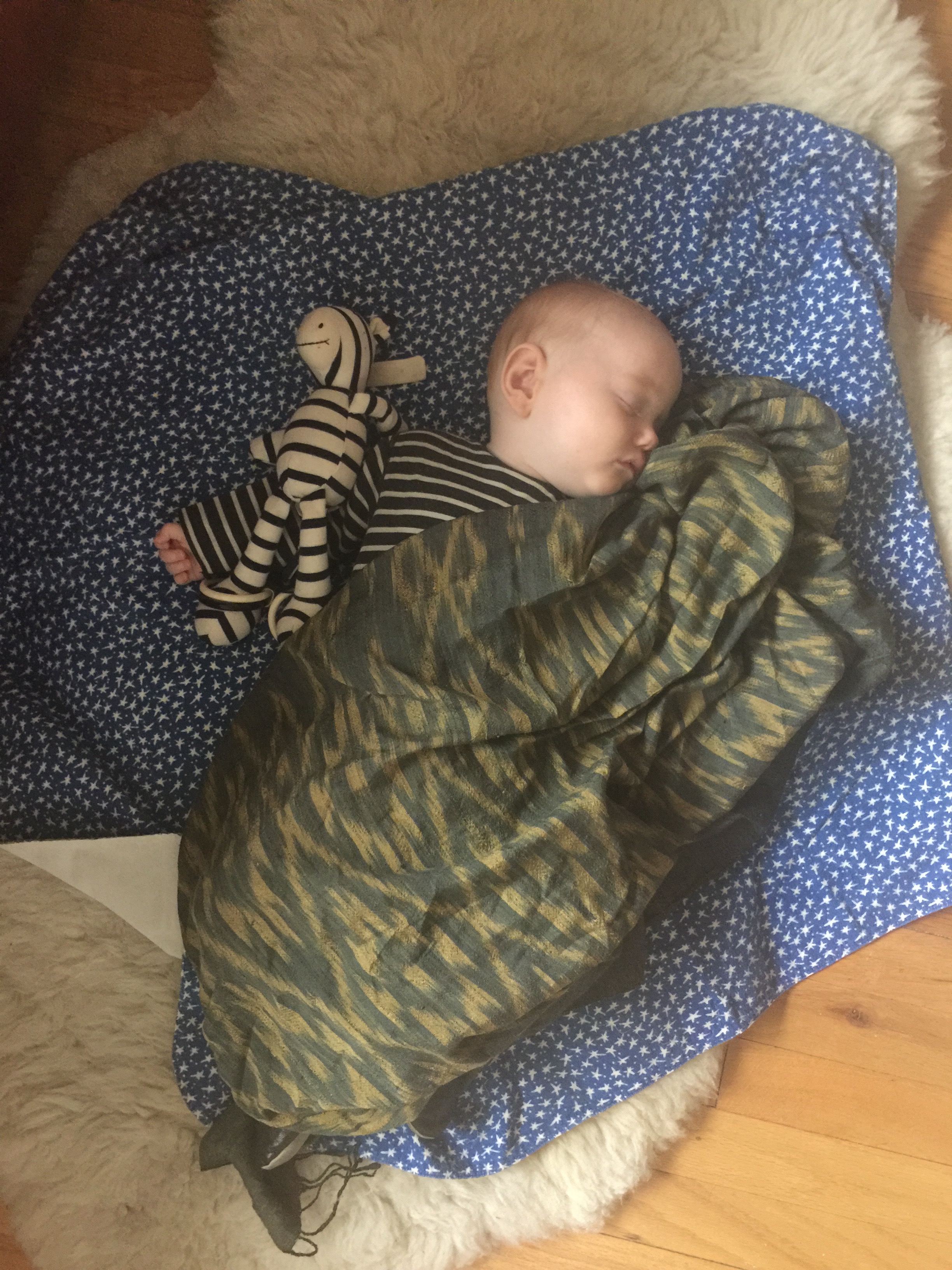 He slept most of the day. He even slept through the daycare fire drill. They piled three other babies in his crib and rolled him outside. He stayed peacefully asleep. And he refused the applesauce.
