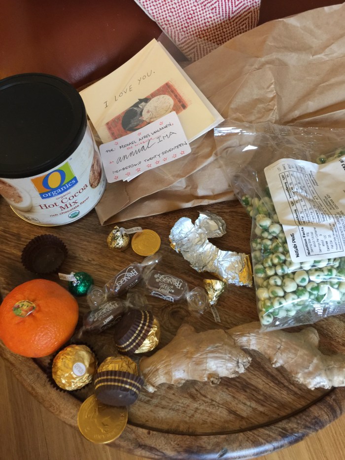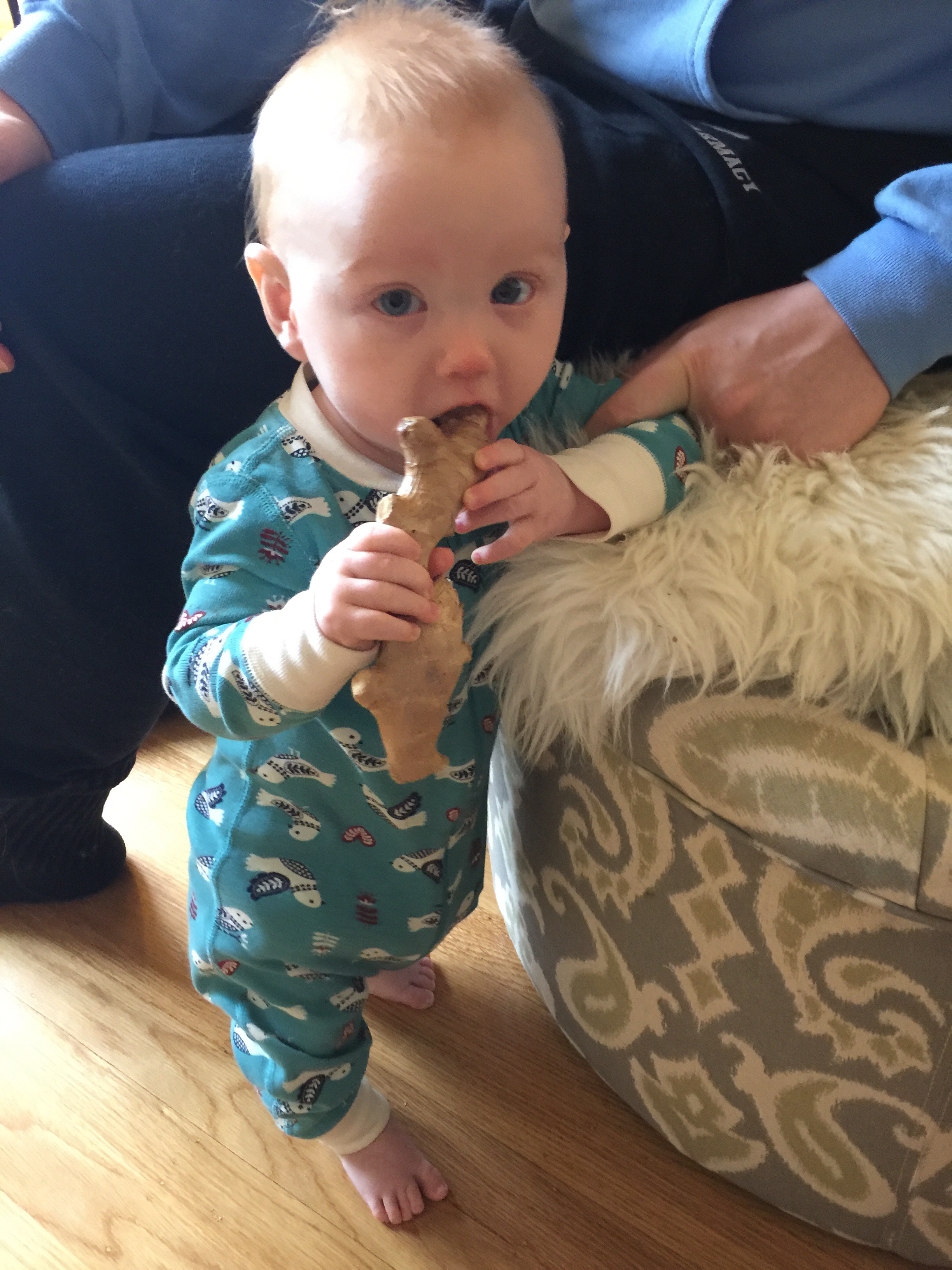 Yesterday we finally got around to opening our Christmas stockings on New Years Eve Day. Among other things, Santa had brought Michael a ginger root.