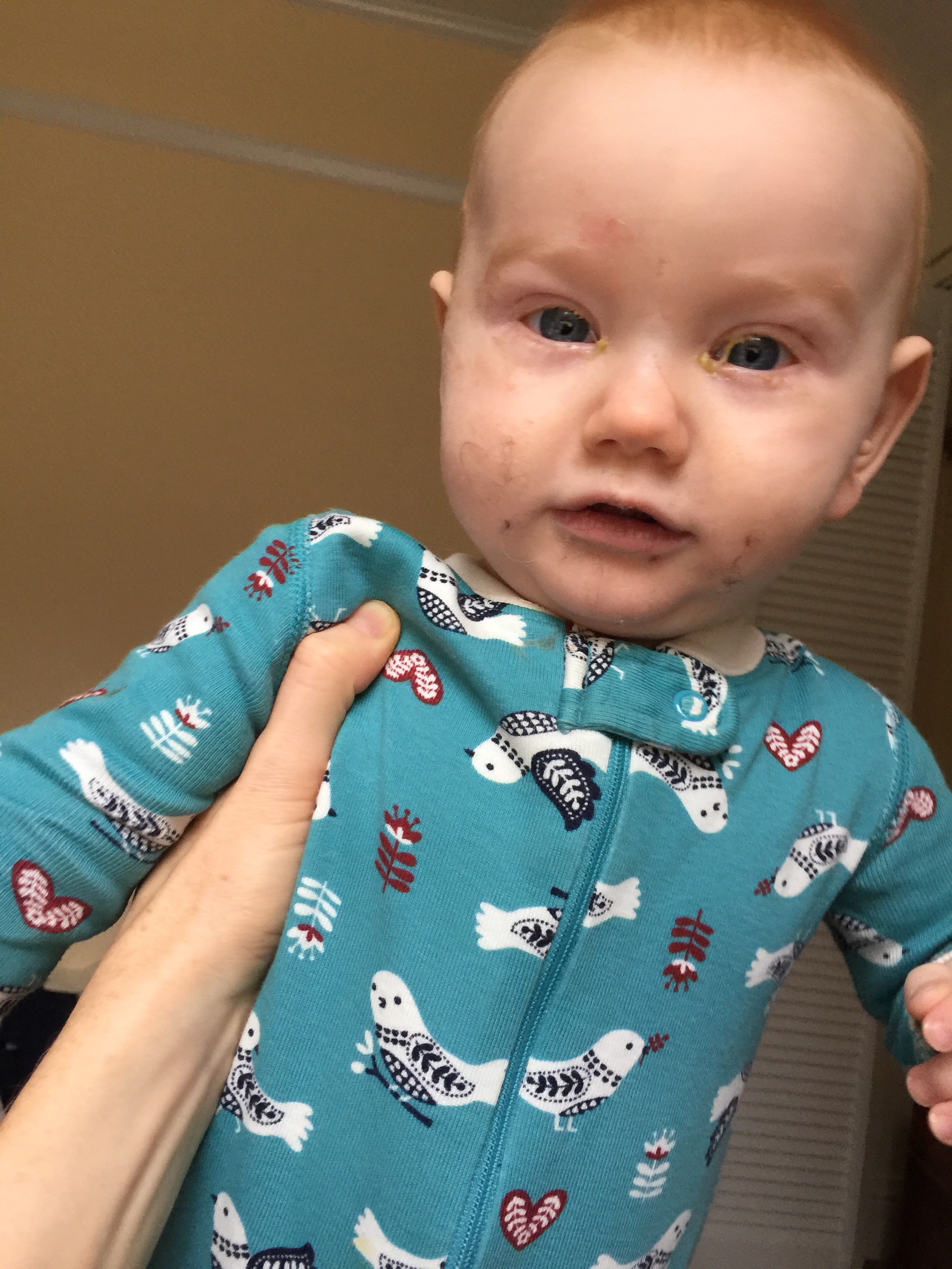 Our little ginger has been continuously sick since the moment he touched foot in his daycare on November 17th for an hour long trial visit. The most recent iteration includes a lovely viral conjunctivitis wherein Lake wakes up every morning with his eyes glued shut. Hopefully the five day course is running itself out any moment now.