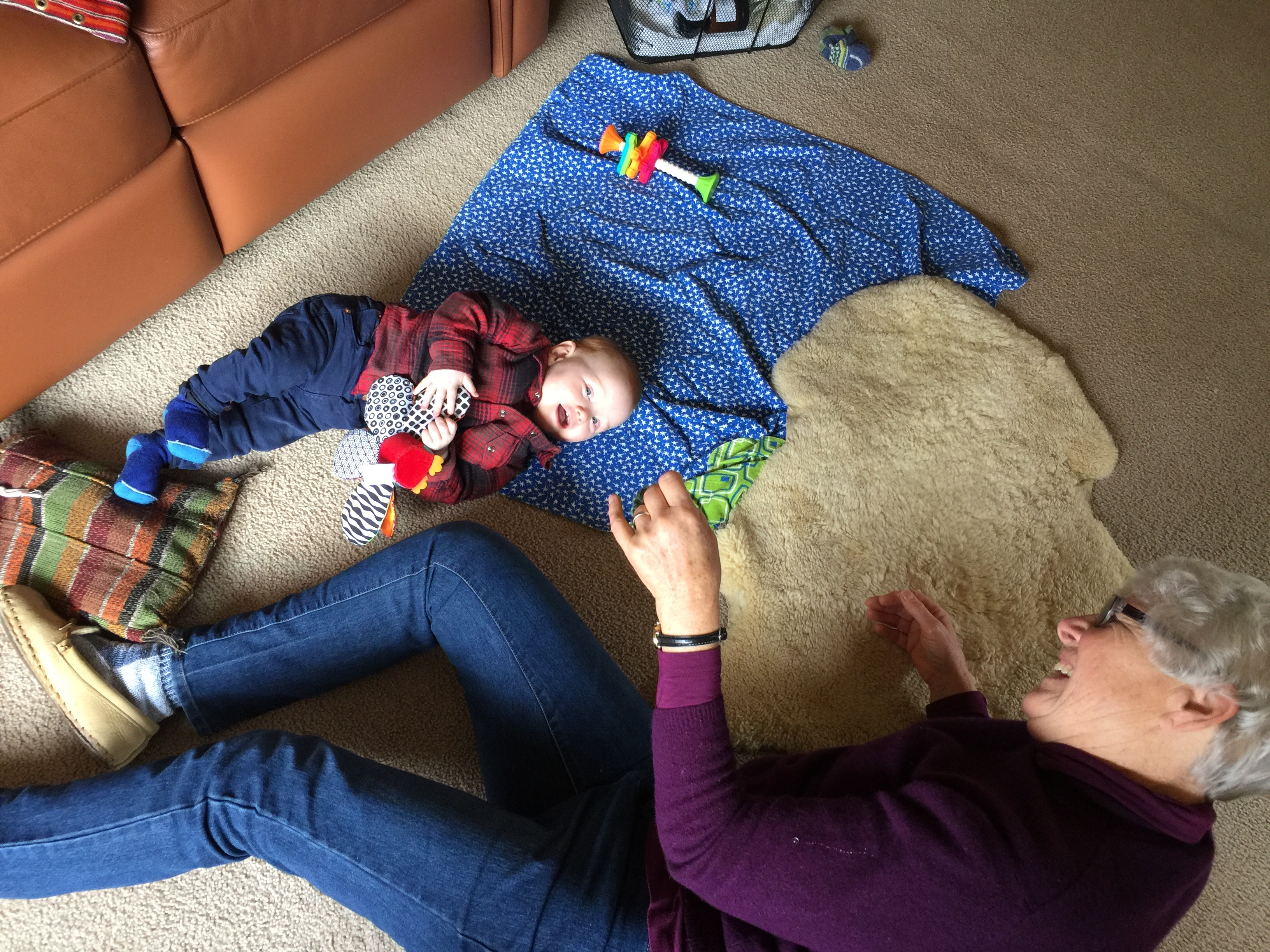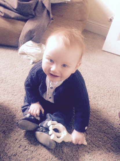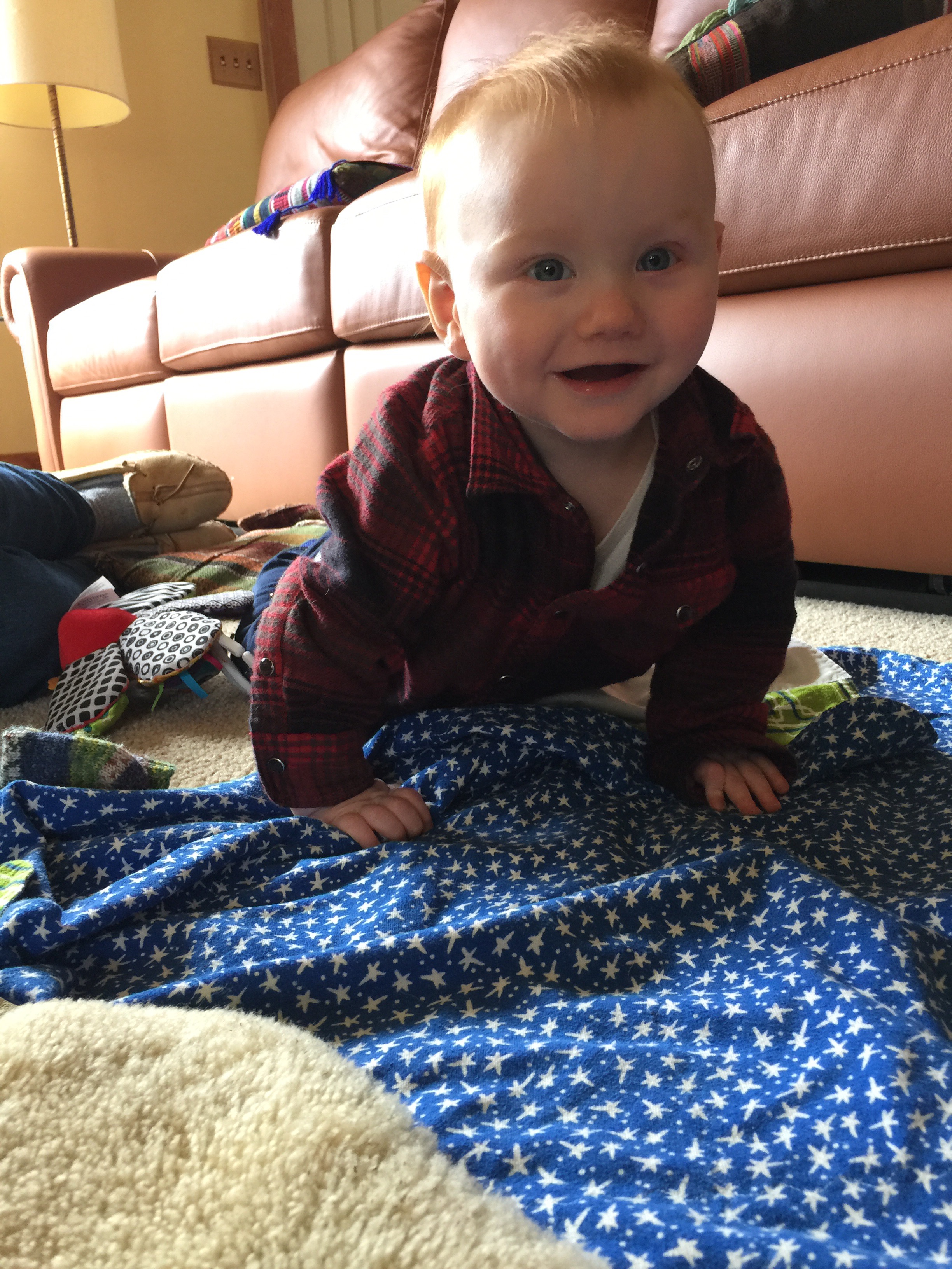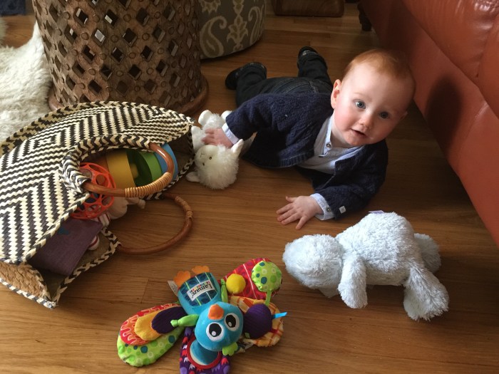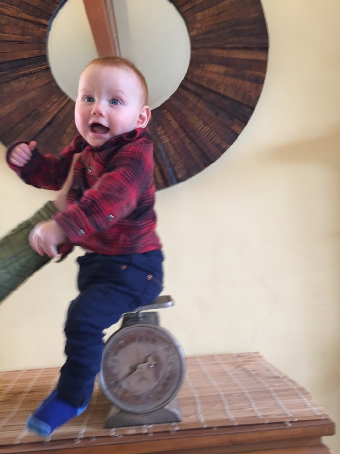 Voila! He did it all. He was crawling for the first time. Giving kisses for the first time. And pulling himself up to standing from the floor. Really! Long and lean… what an all-star!