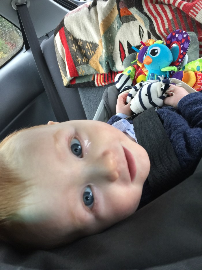 When we got successfully settled in the car, Lake cheered immediately. He began talking to himself. He kept his self entertainment going for much of first leg of the journey south down I-5. then he thankfully fell asleep for the trafficky bits. Out near Satsop we had to call Michael at work. Lake had gotten himself into a corner and we needed an interruptor, a game changer. When Lake heard Michael on the phone he instantly calmed. I think cell phone driving law needs to take into consideration the alternative. Holding the phone up in the air behind me On speaker was still safer on my concentration than the full-on screaming mode.