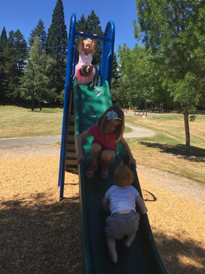 Lake loves playing with his sweet cousins. They spoil him and call him “Baby Lake”, though Maicy did acknowledge that he wouldn’t always be a baby and that maybe they could then call him “Big Baby Lake”. He loves climbing up or sliding down the slide and being pushed high on the swing.