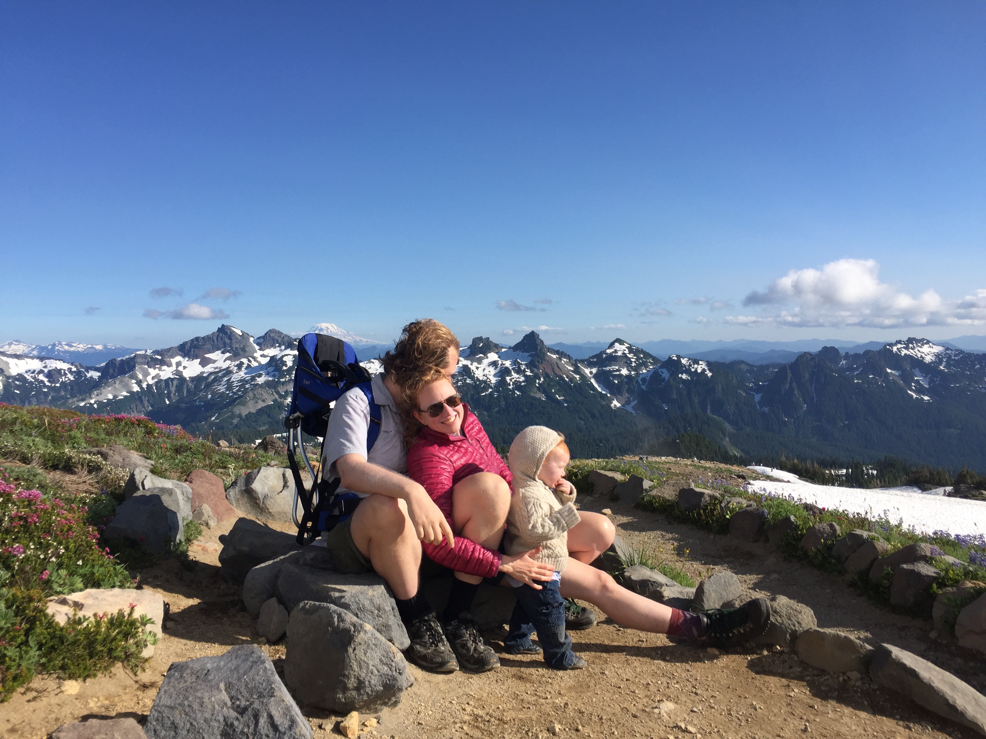Indeed it is spectacular! We hike the Alta Vista trail, having fun, taking in the panoramas, admiring the wildflowers, playing on the snow, and glisading. Michael and I reminisce about climbing up to Camp Muir in the fall of 2015, Lake in his first trimester, and how we came back last fall with Lake as a baby. We love the Paradise of Mount Rainier.