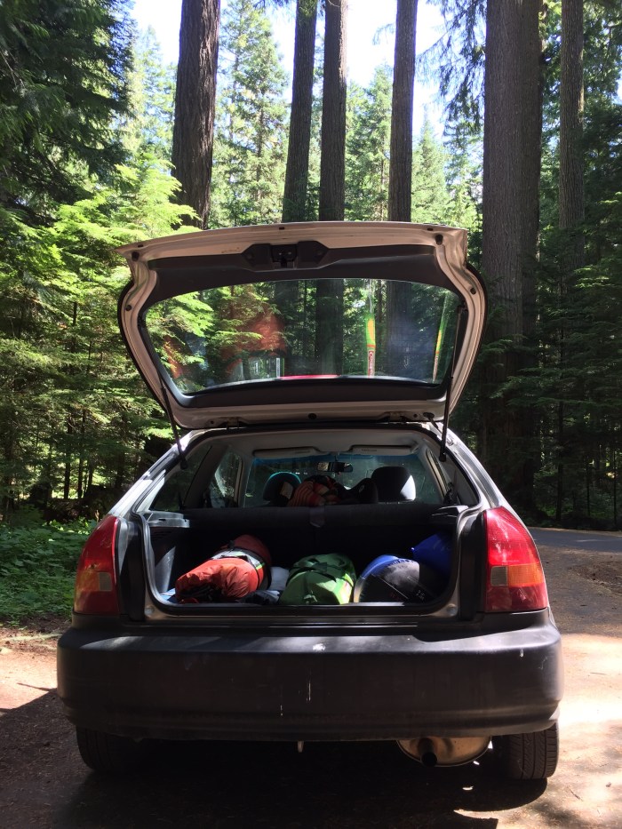 We take our 3 door 1998 Honda Civic and pack it full of supplies for the weekend. Actually Michael does all the gear packing Thursday so that we will be ready to go early on Saturday morning. We have enough of everything for four adults and a baby. The “Germans” are coming with us, that’s Jo and her fellow au pair friend Doreen, and they kindly organized the food. We have an absurdly full car, a veritable warrior party on wheels, and lots of entertainment for Lake and each other.