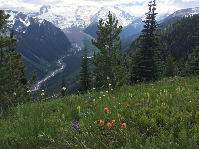 After saying goodbye to The Grove of the Patriarchs, we drive up to Sunrise, the highest point in the park accessible by car. It boasts amazing views and is much less populated than Paradise. It is only my second visit to this gorgeous location and everyone else’s first time. We are so glad this is how we cap off our weekend warrior tour of the Park. The wildflowers are on display high above the White River, as viewed from the Silver Forest Trail.