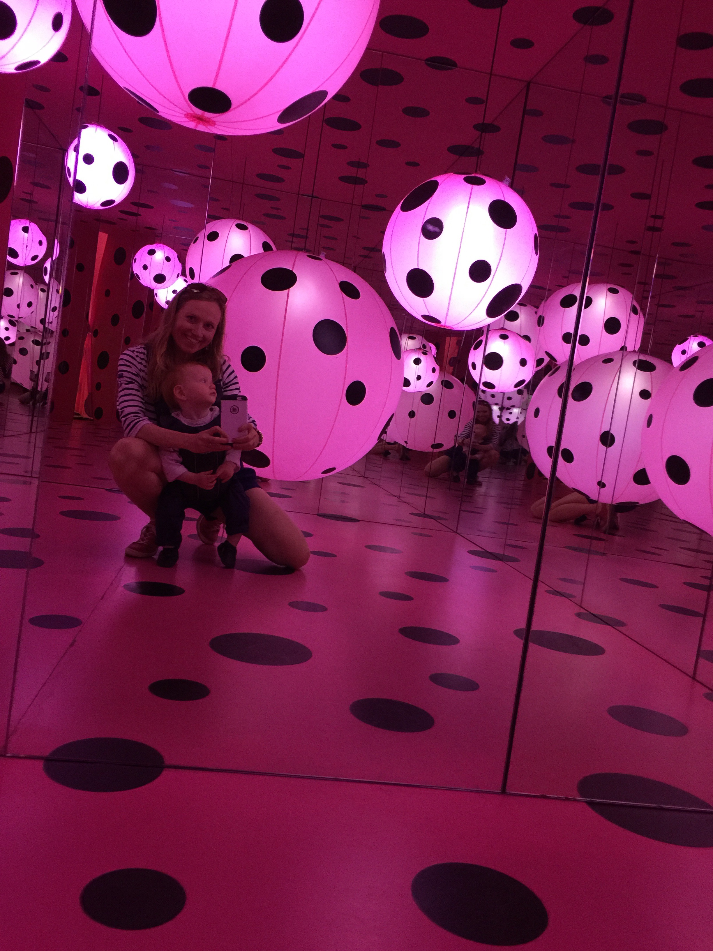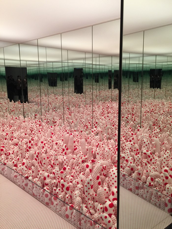 My absolute favorite was the Infinity Mirrored Room–Aftermath of Obliteration of Eternity. There is no picture because I was too mesmerized! At one point all the lights went out and it was completely dark. Then what equates to a million or more soft candlelight- type hanging lights came slowly back on. Amazingly beautiful. You might just have to see it for yourself!