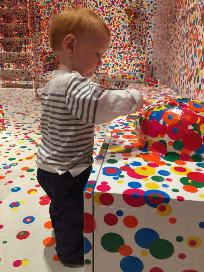 He also started warming up to the experience and had more and more fun in the next two. Polka-dot mania! Literally: Dots Obsession–Love Transformed into Dots, 2007, installed 2017.