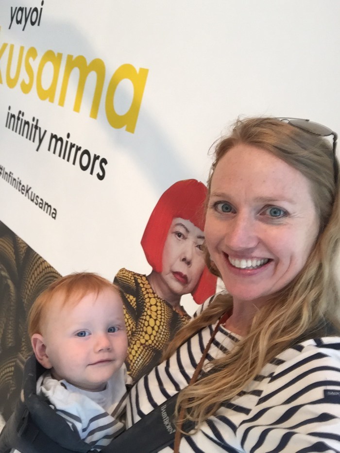 We stand in smaller lines for time-stopping 20-30-second-immersions in each of her mirrored rooms installed here in the gallery. She first developed this concept phenomenon in 1965 with Infinity Mirrored Room–Phalli’s Field.