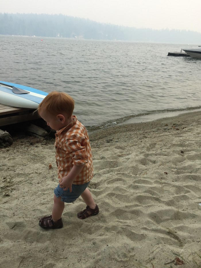 Our week of holiday has been rather perfect though smokey. We packed up the whole family and driven over to eastern Washington to our family lake cabin perched on the side of the peninsur hillside. Lake is the fifth generation to putter on the sandy beach and climb up and down the whimsically crooked stone steps, exploring freely.