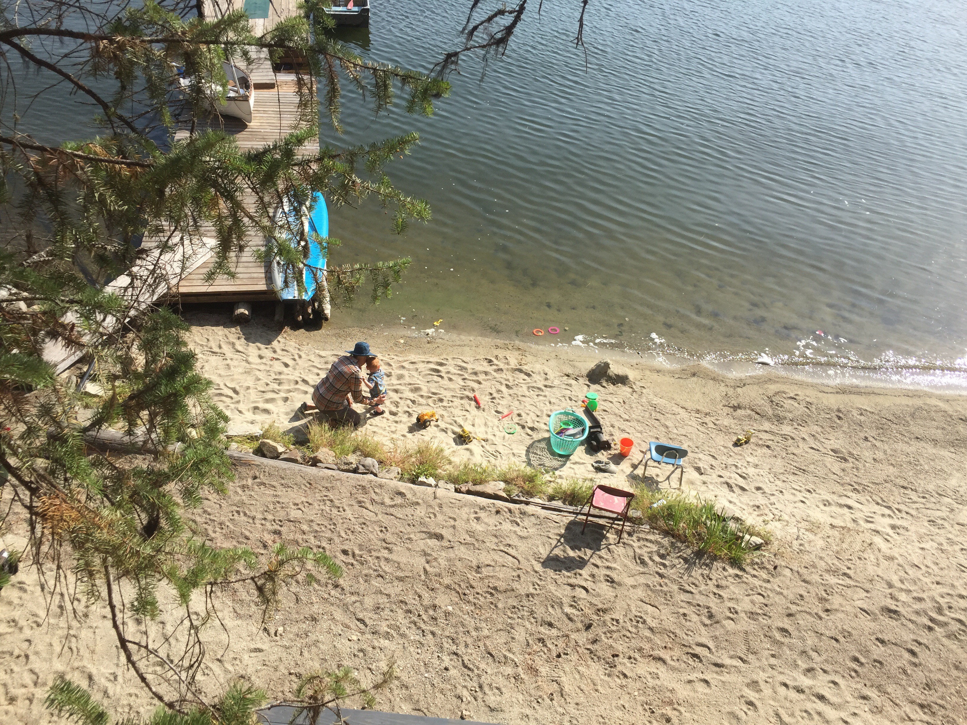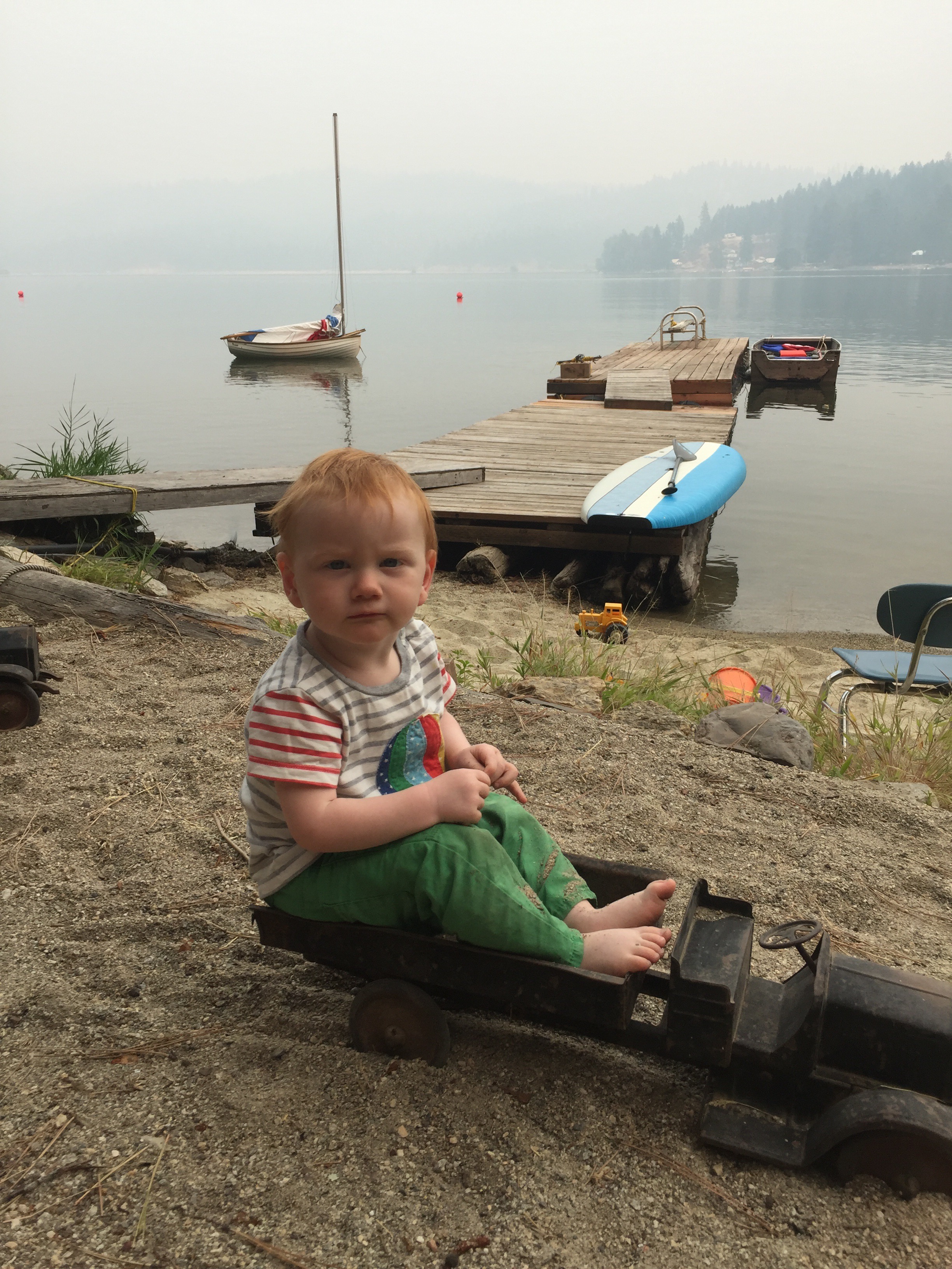 Our week of holiday has been rather perfect though smokey. We packed up the whole family and driven over to eastern Washington to our family lake cabin perched on the side of the peninsur hillside. Lake is the fifth generation to putter on the sandy beach and climb up and down the whimsically crooked stone steps, exploring freely.