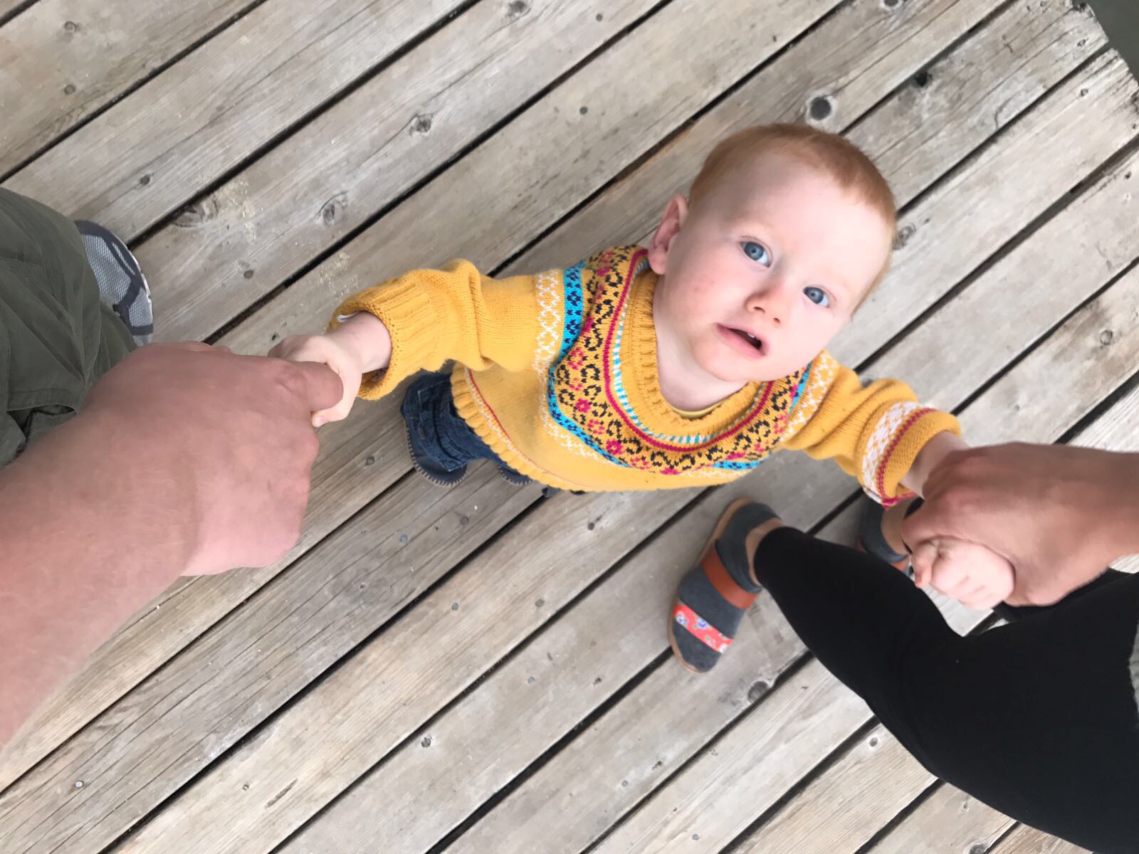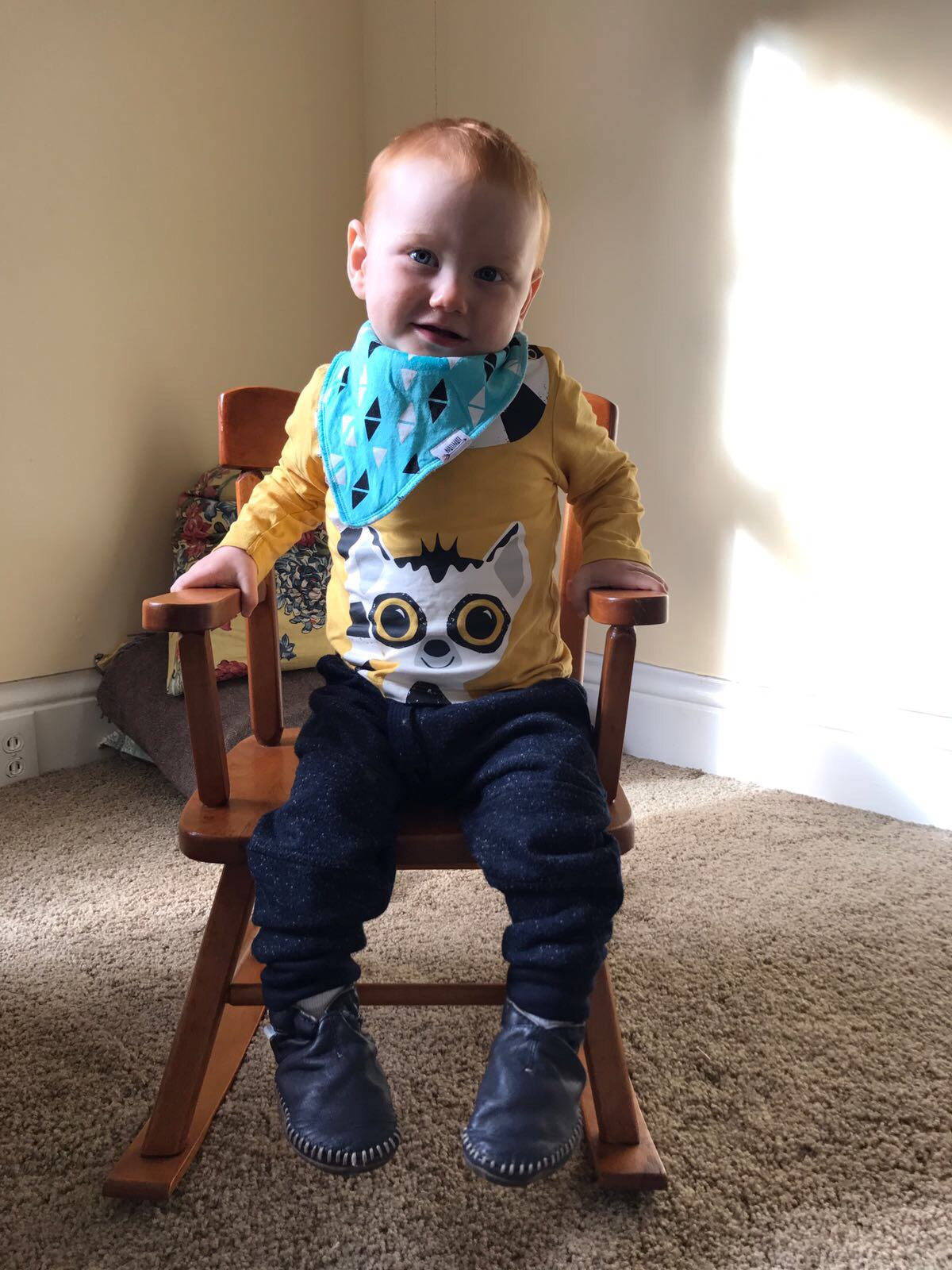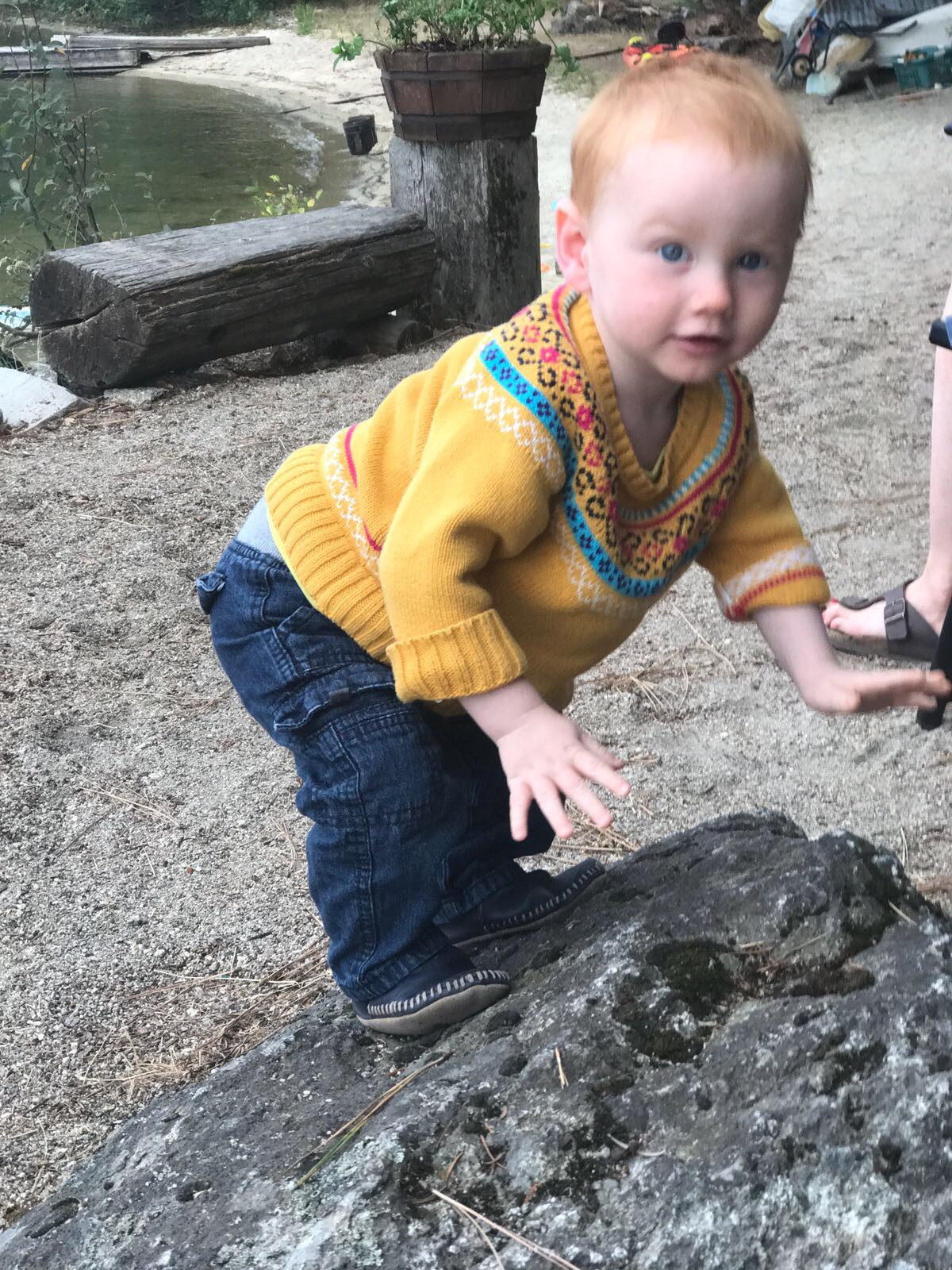 Lake has become the proud recipient and owner of his very own heirloom rocking chair. His grandmother Julie lovingly restored it this summer and just brought it for Lake. It was hers as a little girl and then Michael and his sister played on it when they were little. It’s the perfect size. Lake loves to climb up on it and sit there in a self-satisfied way before sliding off frontwards. Then he is often climbing right back aboard. The cycle continues…
