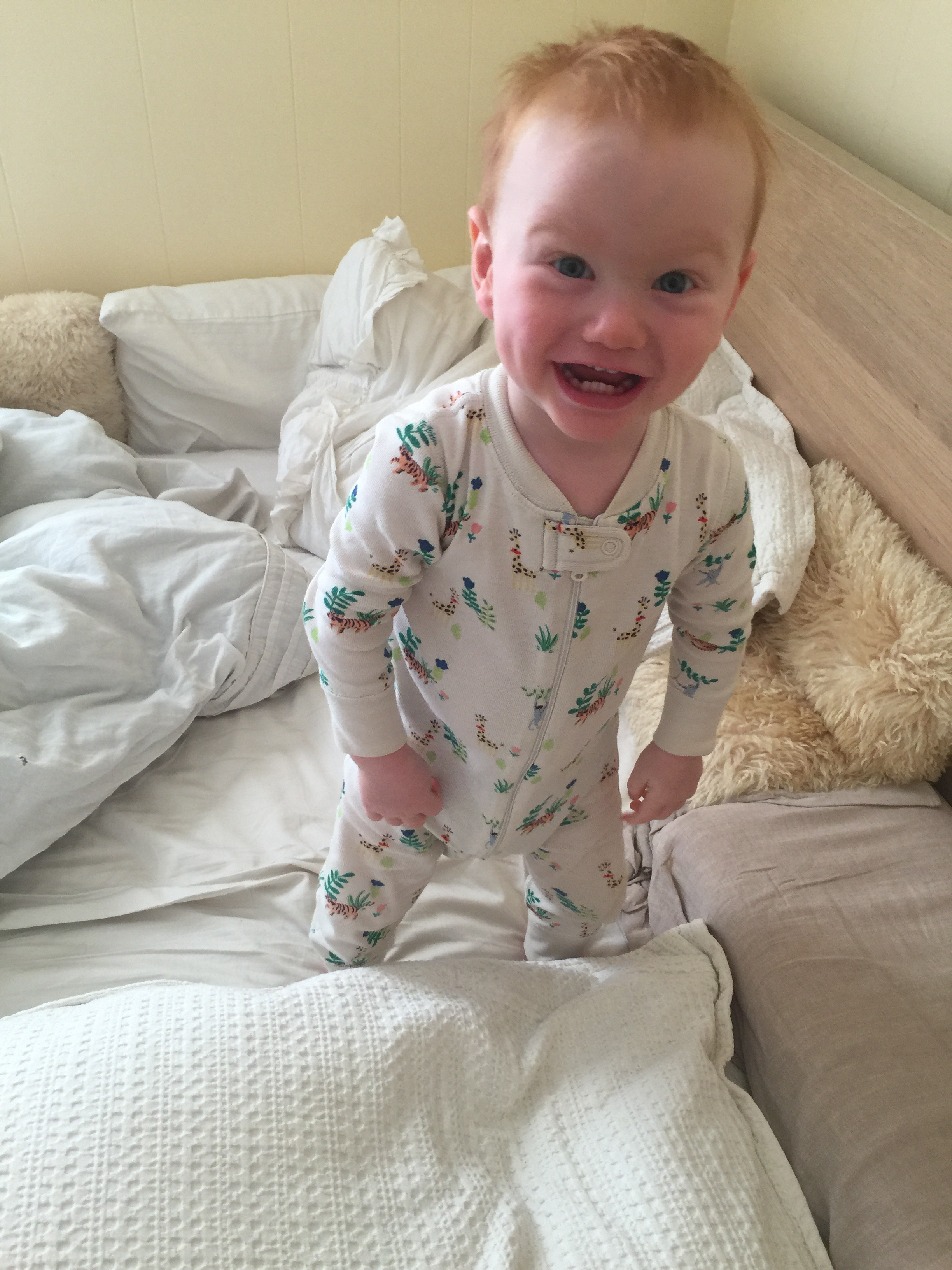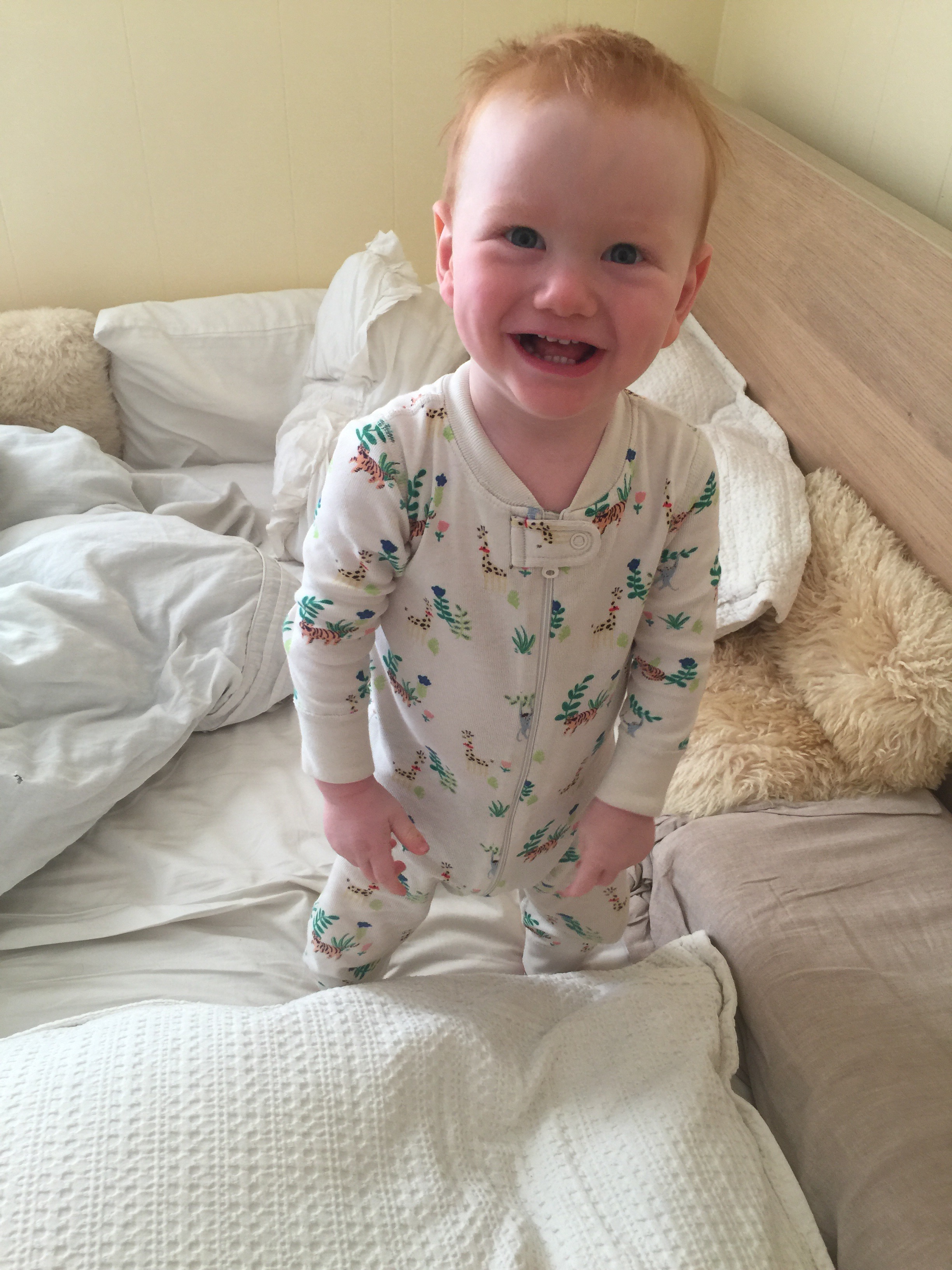 His new favorite word is uh-oh but there doesn’t seem much wrong in his world. He remains ebullient and unfazed. His other three words continue to remain: