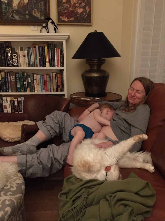 After the yoga retreat at Sleeping Lady, which lived up to its name, I came home Sunday to a very sick baby. It was a bumpy landing. I had had a restful and rejuvenating weekend of yoga, once I got through the initial fear of our separation. I was free and living joyfully. Lake had had a lovely weekend with my parents too, sleeping through the nights and generally enjoying himself to the maximum. By Sunday evening though, he was hot with fever and didn’t want to sleep. He could only find some semblance of solace though breastfeeding. All. Night. Long. It was Sleepless Lady for me. Fortunately I’d been concentrated on self-care all weekend at the Sleeping Lady Resort and my vessel was filled up. I was able to draw on my reserves right away! It was an immediate and very real situation inviting me to put my yoga into practice. We survived the night of constant hydration and never topped 100.1F. Monday has given us a rather discomfited baby, but an opportunity for recuperating and practicing patient compassion nonetheless. A perfectly imperfect day; I’m glad I spent it with you.
