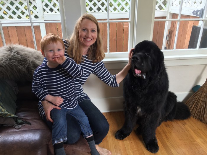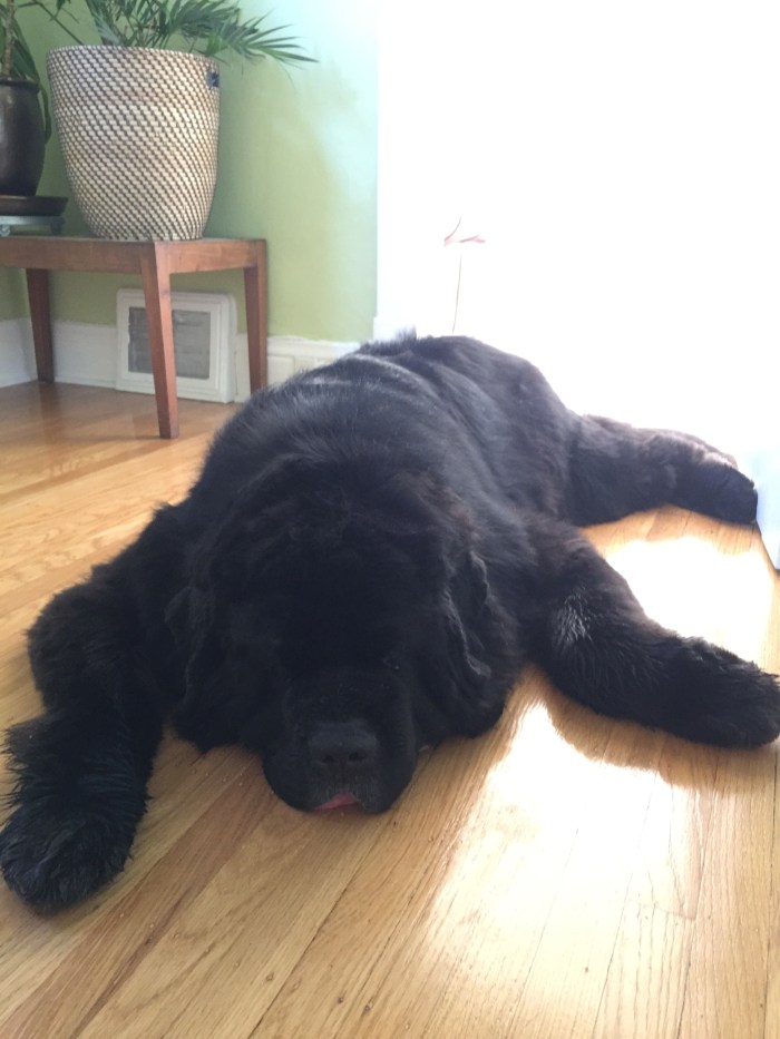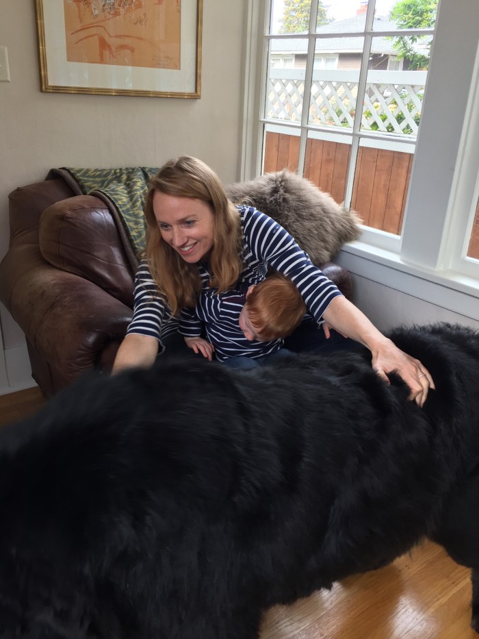 Soon after we bought our current house we started dreaming of a dog and discussing which dog to look for. Michael immediately began researching on the American Kennel Club website and we both quickly agreed on the Newfoundland breed. Everything clicked for us. The heroism the massive presence, the heart of gold, the gentle nature. The biggest, the quietest, and uniquely attentive to children. Not a guard dog per sae, but a guardian dog, and certainly a protective entity by pure mass.