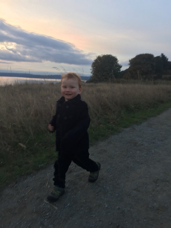 Lake is pictured here running Saturday evening at Discovery Park (Christened “Big Daddy Tom Park”).