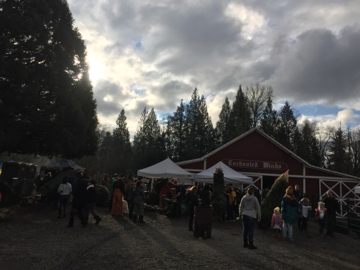 Sunday we went to Pike Place Market by Link light rail (where per Lake we ride the alligator ie elevator) for family pictures. We drove out to Issaquah-Hobart to the Enchanted Winds Christmas Tree Farm for the Newfoundland Club of Seattle sponsored annual carting event.