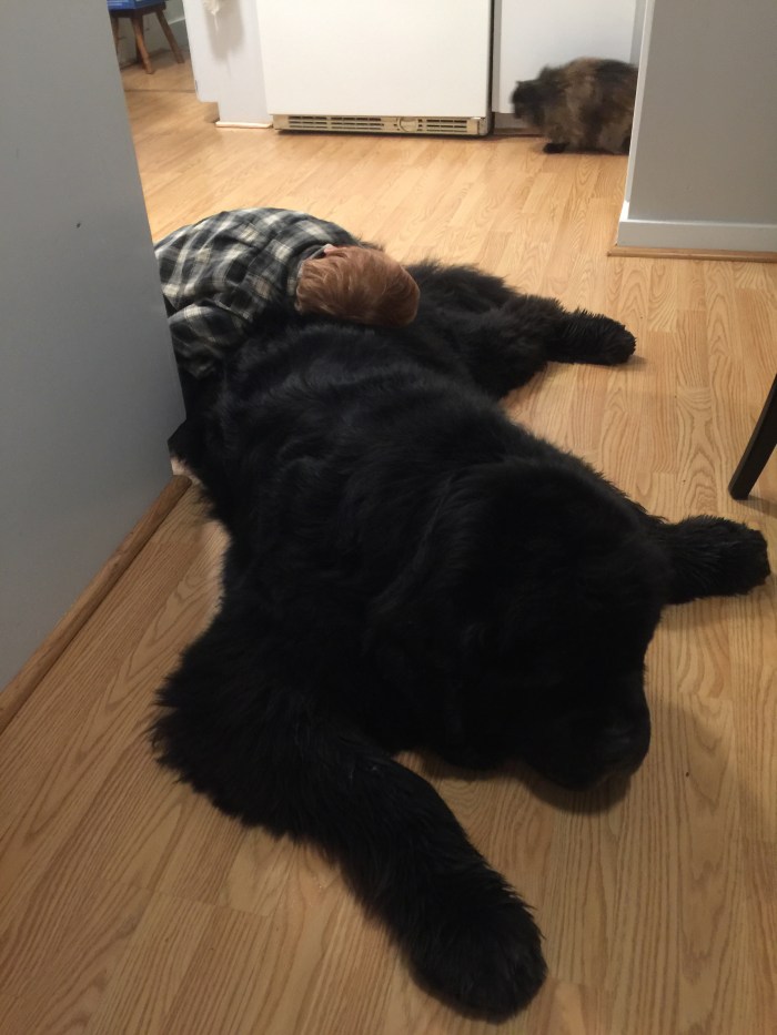 Finally, we picked up Newfoundland Langley from the Rupert’s home. Yes, the four of us all fit in The Egg (our ’98 Honda Civic, aka compact family car). After his initial apprehensive shyness, Lake warmed back up to his old friend Langley. Lake said, “So Bi-ig!” “I touched him! He’s fluffy!” and “Langley Loves Me.”