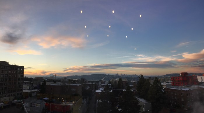 Natural beauty of the morning played stunning backdrop to my first official yoga class as instructor. The Tuesday morning 10 week series Hosted by Whole U and the UW Tower couldn’t have gotten off to a better start. We began at 7 am in the darkness and by 8 am the world was awakening in a lavender, periwinkle and peach glow, as pictured above. Meanwhile we woke up our minds and breathed life into our joints, filled our lungs with air and our hearts with joy and gratitude. I feel so proud of my students and grateful for having manifested this opportunity step by step. Thank you to Synergy Yoga School (where I not only became certified, but also holistically nurtured), Cathy Null (my pharmacy manager who made sure My work schedule allowed for the yoga teacher training), Lauren Updyke (of Whole U, who for some unknown reason chose to support and believe in me), Troy Swanson (facilities manager who was excited to add yoga to his building’s green cred) and my lovely prior yoga teachers (all of them!) and my incredible family, especially Michael, Lake, NanaBaba, and Jamma Julie for supporting me along the way. This is a dream come true, and I couldn’t have managed it without your support! Thank you! A perfect day for a yoga class taught by Mama Tolle… I’m glad I spent it with you! And here’s to many more to come!