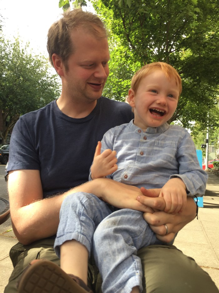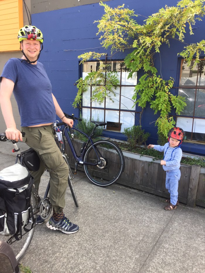 Sunday for Father’s Day we had an urban family adventure. We went on a bicycle adventure to Ballard and Fremont… both neighborhoods have a Sunday market! As a gift to me Michael pulled Lake in the Burley trailer up and over all the hills between here and there and back again. Our day surely included lots of presents and pie for Michael! Michael is a wonderful father! We all love him so much and he keeps things fresh and fun! A perfect day, I’m glad we celebrated with you!