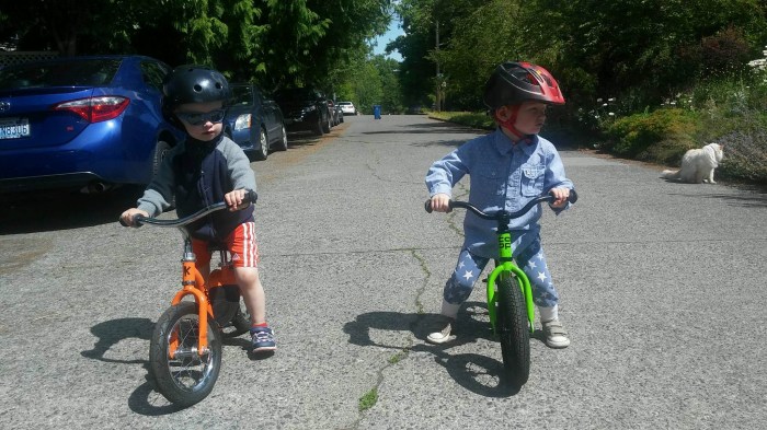 Did you know? Free permits are available from the City if Seattle to block off your street to through traffic. As long as you’re not blocking an arterial, the city is very likely to approve your free permit which is good for weekly Play Street for six months! We were inspired by our neighbors on 17th and went ahead and applied for the permit allowing us to close our street for up to 12 hours per week. It was a soft opening on Saturday… a few neighbors stopped by to say hello. Lake and his friend Damien enjoyed cruising up and down the street on their balance bikes, even going in circles. Mr. Cat may have been the biggest fan, though. Nice having a reprieve from cars for a bit. The cats were owning the street. We’ll look forward to more Play Street ball playing bicycle riding neighborhood adventures to come!