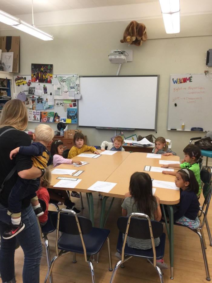 Lake is clearly pleased to be part of Birgit Zischke’s Kindergarten class. GLS rents classroom space from the Villa Academy in Laurelhurst, and holds their school from 0930 to 1200 on Saturday mornings. In the Kindergarten classroom on the fourth floor Lake quickly took a seat and felt right at home.