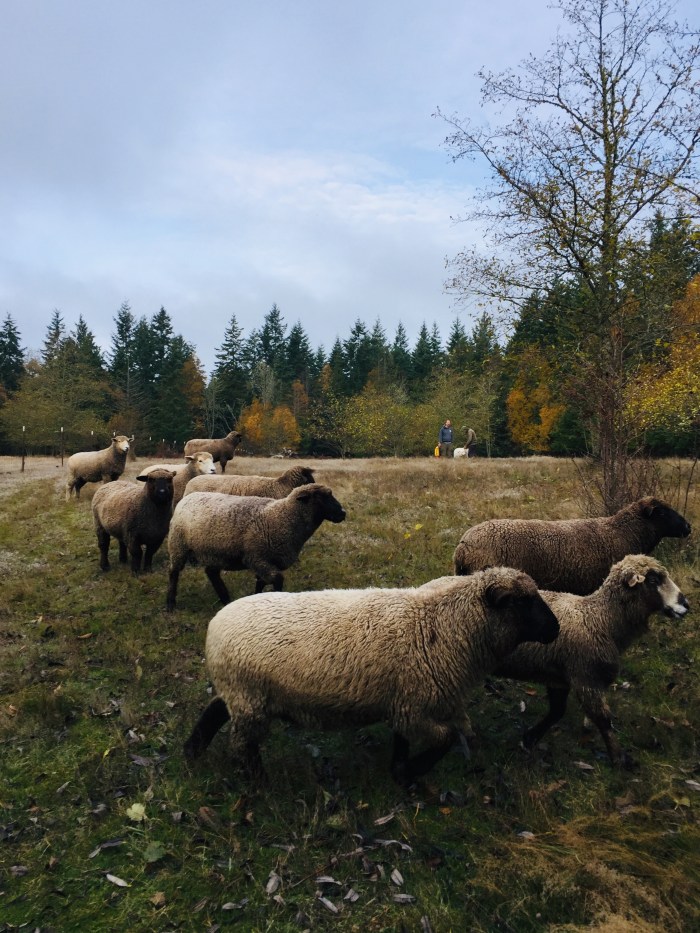 During our visit on Nora and Ed’s Farm the sheep were wary of Lake. None of the nine ended up letting him pet them this time. Instead he sent them running!